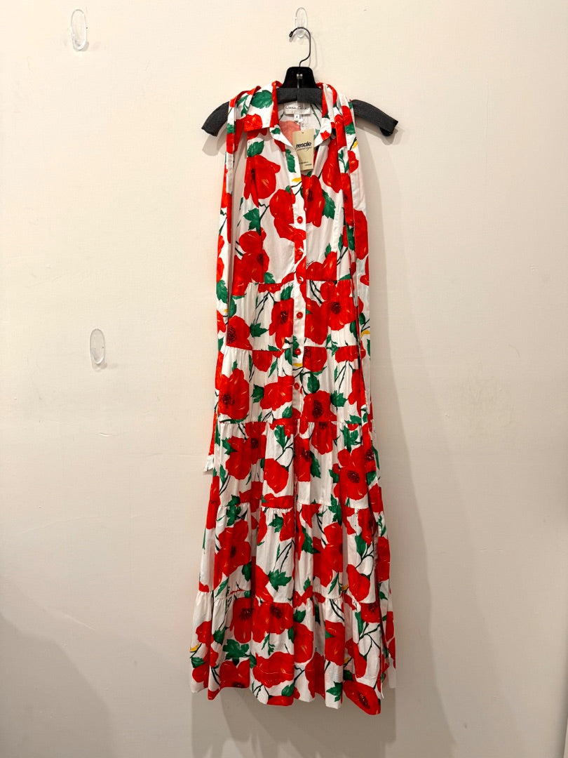 Cara Cara Adriana Floral Button Front Tie Waist Maxi Dress Pop/Tom Womens Size 2