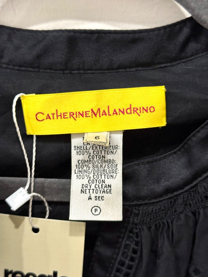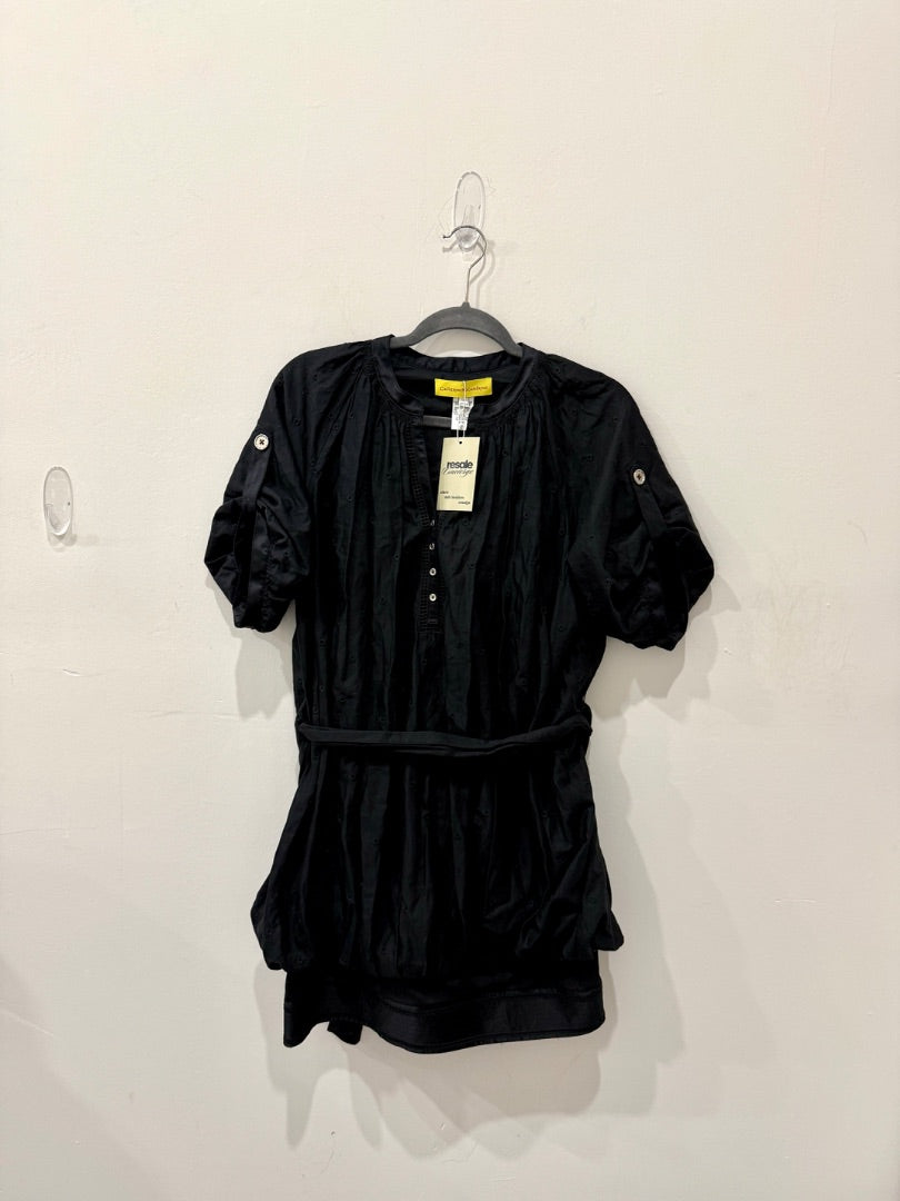 A chic black mini dress made from 100% cotton with silk accents, featuring voluminous puff sleeves for a bold yet feminine statement.