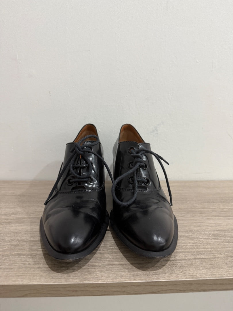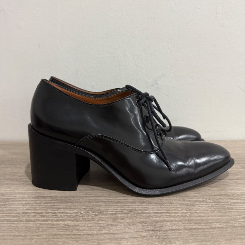Celine Paris Leather Lace-Up Block Heeled Oxfords Shoes Black Women's 39 / 8.5