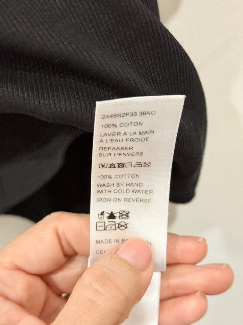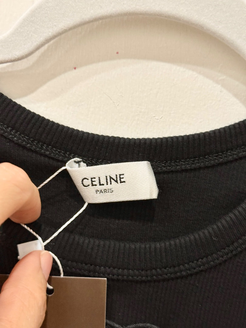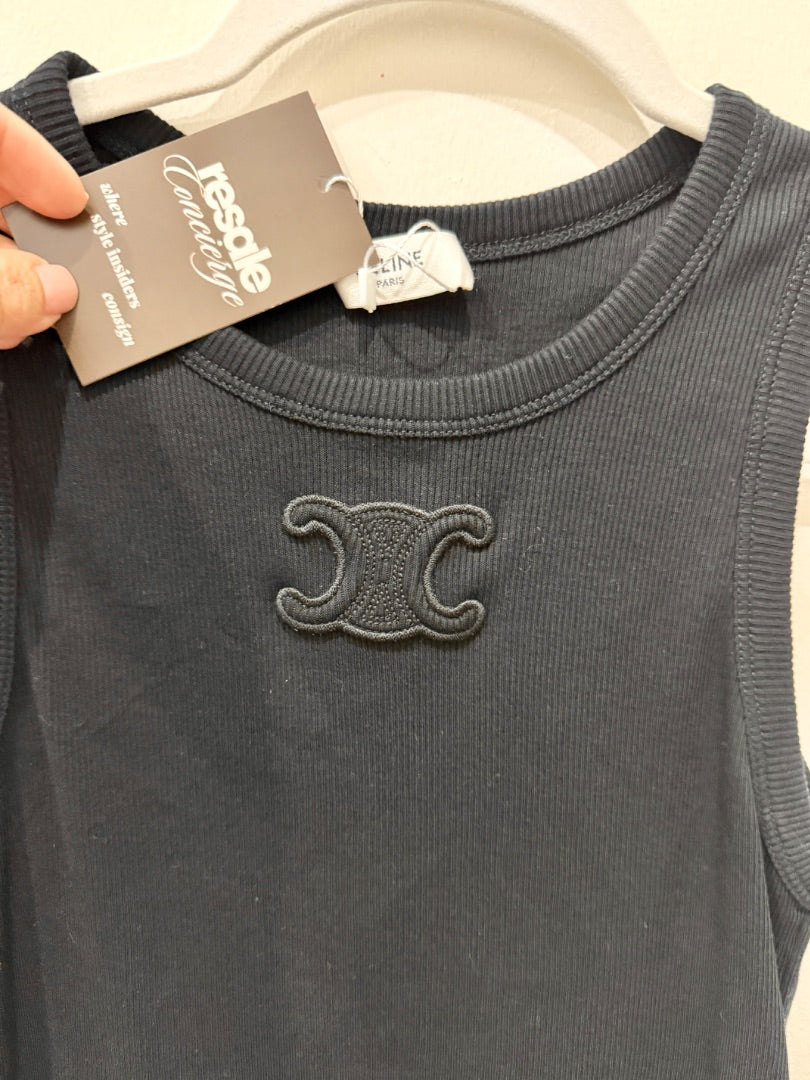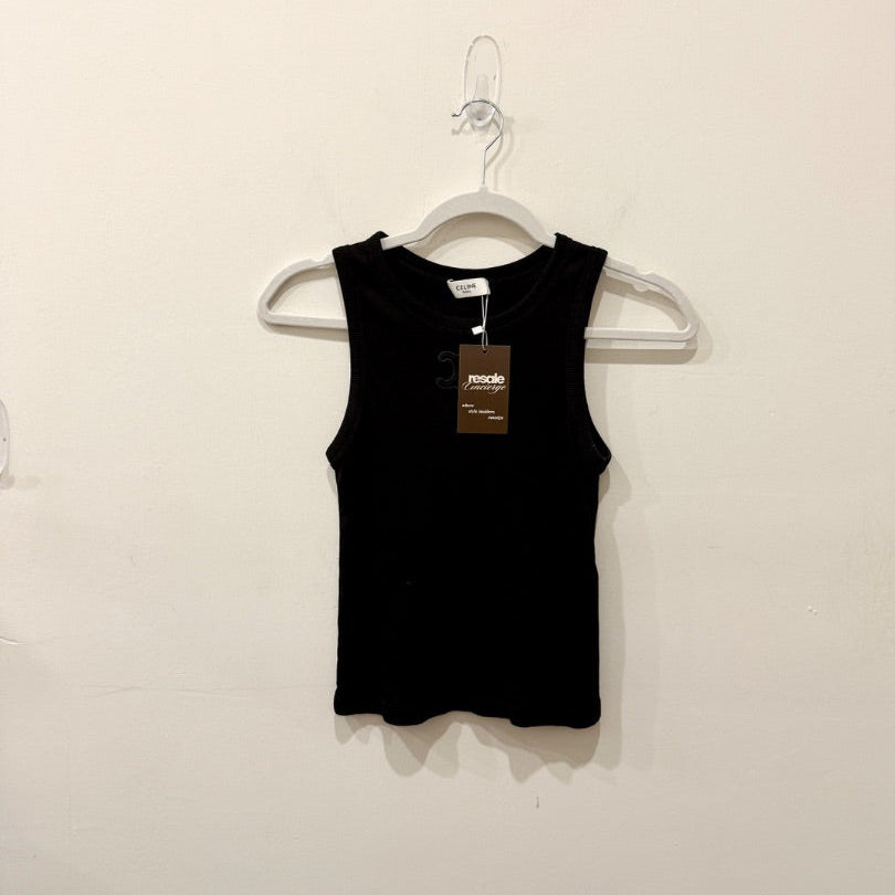 Celine Triomphe Ribbed Cotton Sleeveless Crew Neck Tank Top Black Women's Size S