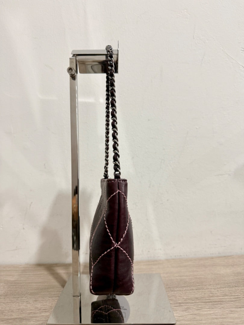 Chanel Super Rare Whipstitch CC Leather Mini Shoulder Bag Wine