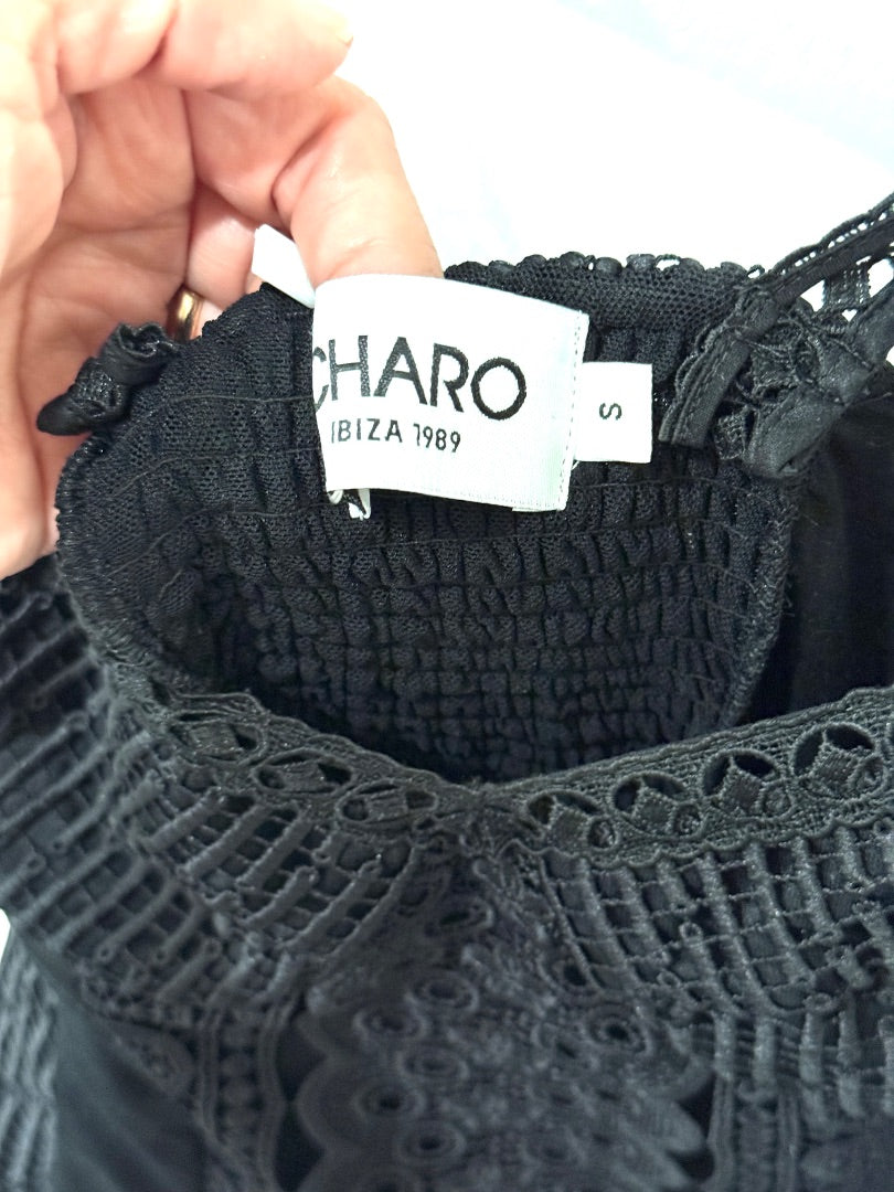 Charo Ruiz Cherrie Ruffle Trim Mini Dress Black With Eyelet Detail Women's Small