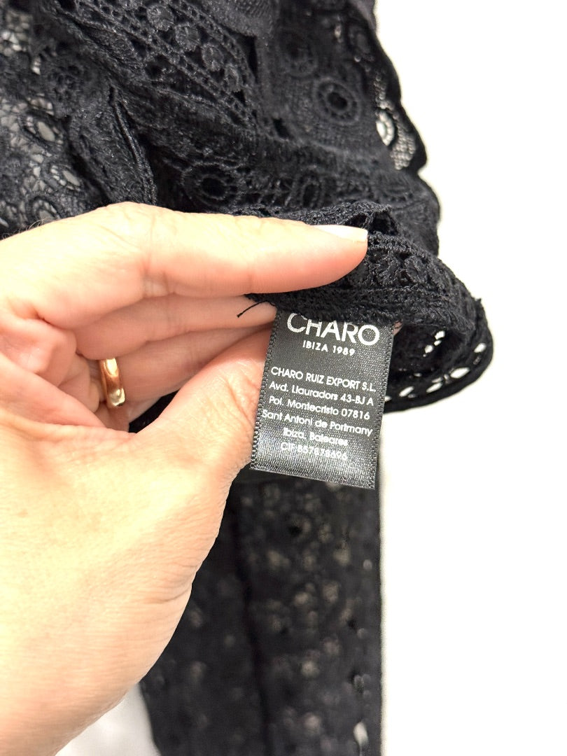 Charo Ruiz Ibiza Tilma Long Sleeve Open Front Lace Jacket Black Women's Size S