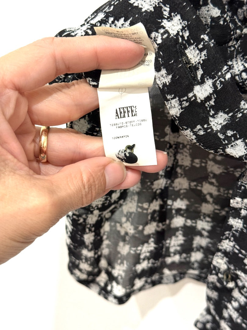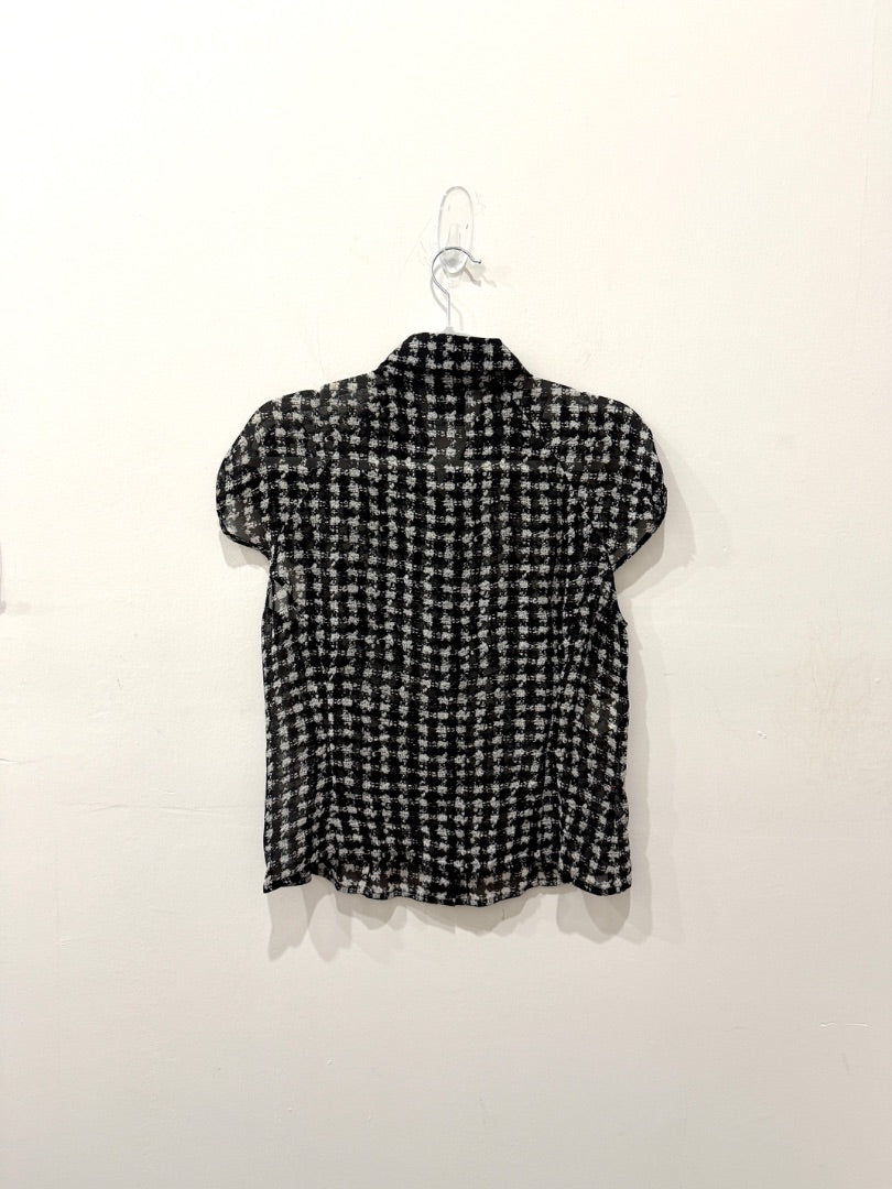 Cheap & Chic By Moschino Woven Printed Sheer Button Front Blouse Black Womens M