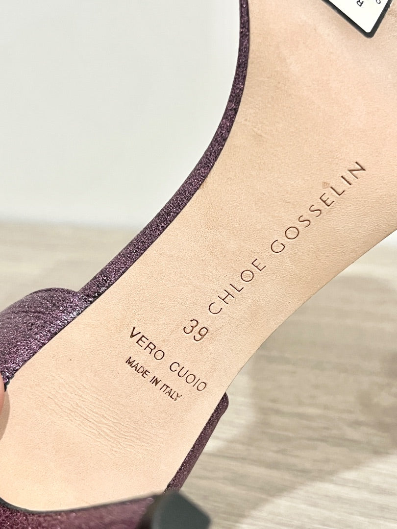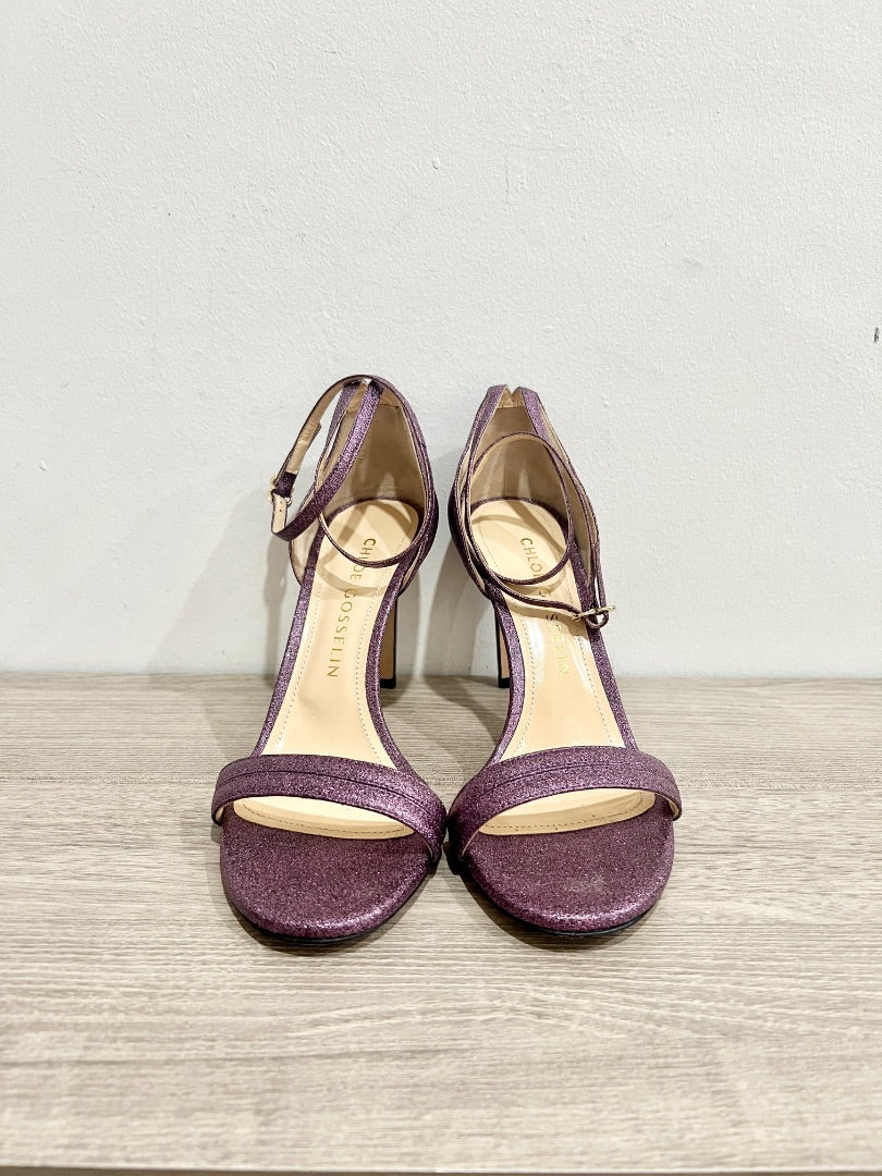 Chloe Gosselin Metallic Ankle Strap Stilettos Sandals Purple Women's Size EU 39