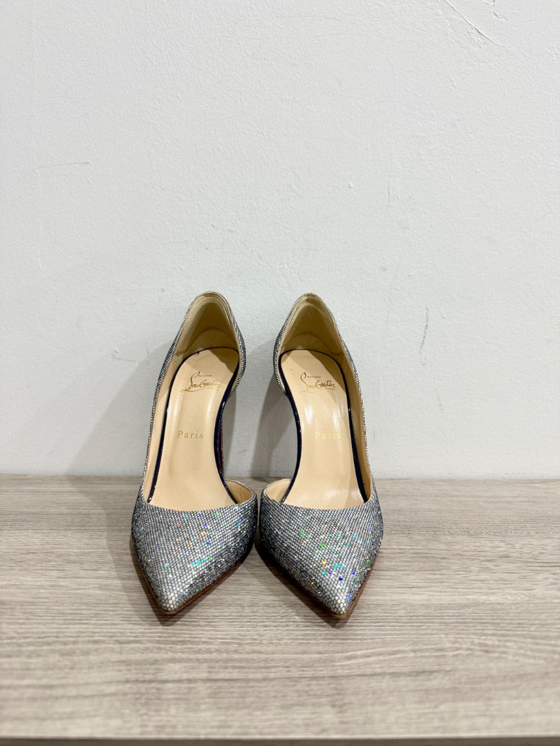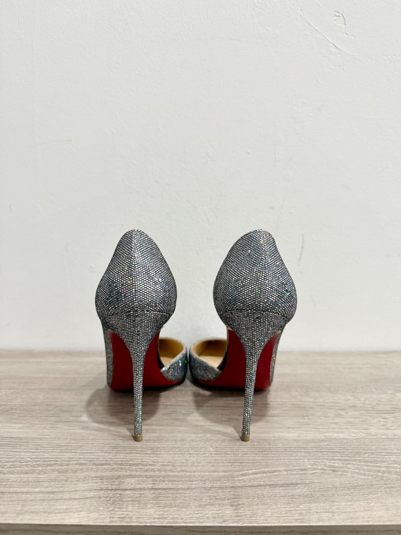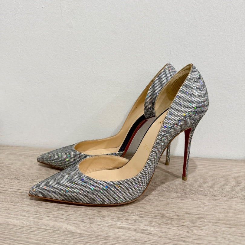 Christian Louboutin Iriza 100 Glitter Heel d'Orsay Stilettos Pumps Silver EU 39