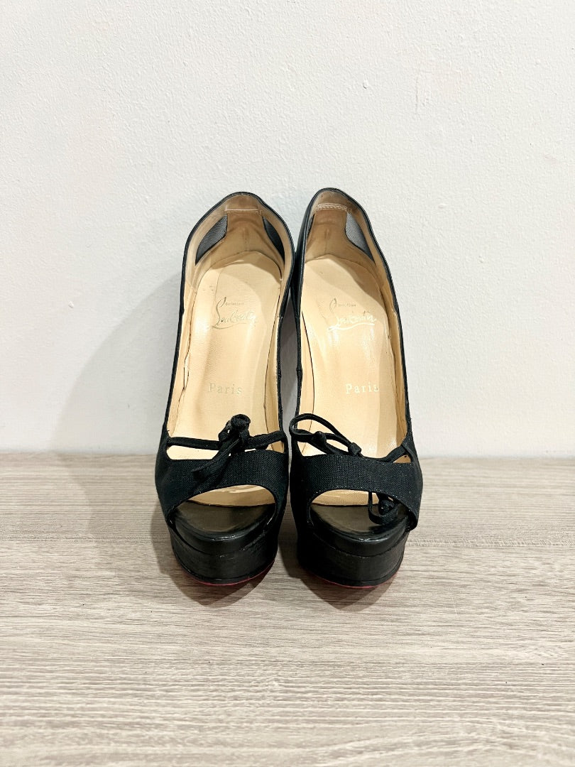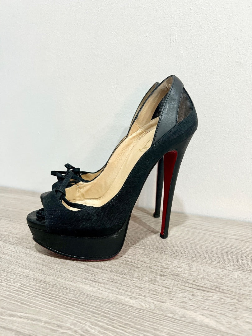 Christian Louboutin Crelino Calfskin Maleva Peep Toe Platform Pump Black EU 36.5