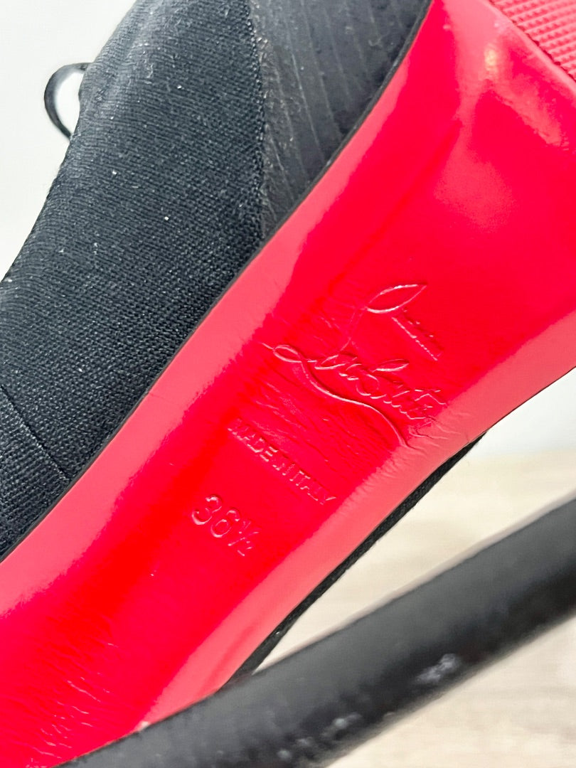 These heels combine classic elegance with modern flair, finished with the brand’s signature red sole for a statement-making look.