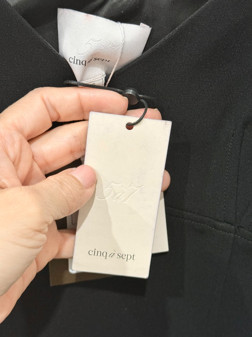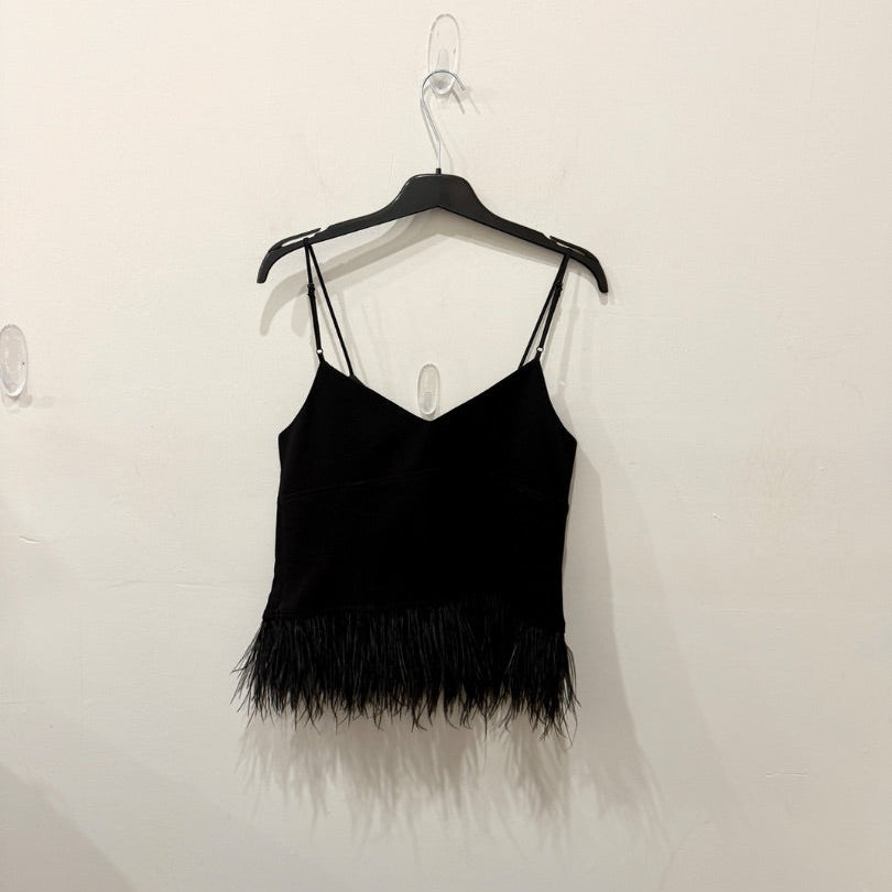 NWT Cinq à Sept Narcissa Ostrich Feather-Trimmed Crêpe Tank Top Black Women's XS
