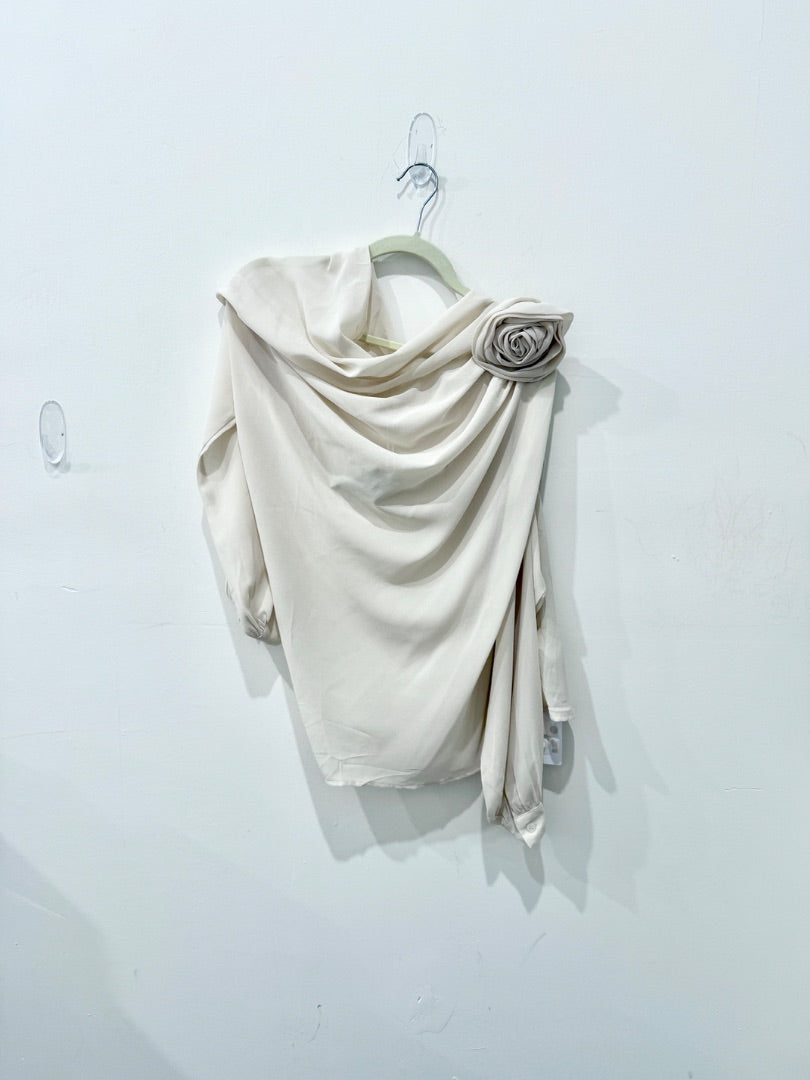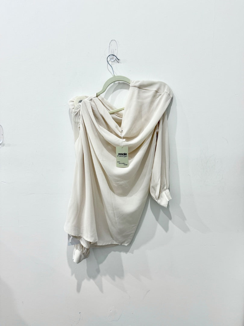 NWT Commense Chiffon Semi-Sheer One Shoulder Asymmetrical Blouse Apricot Size S