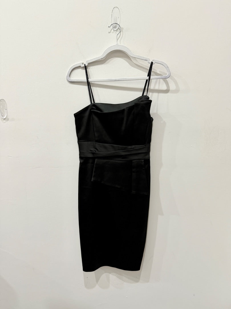 NWT David Meister Sleeveless Spaghetti Strap Peplum Mini Sheath Dress Black 4