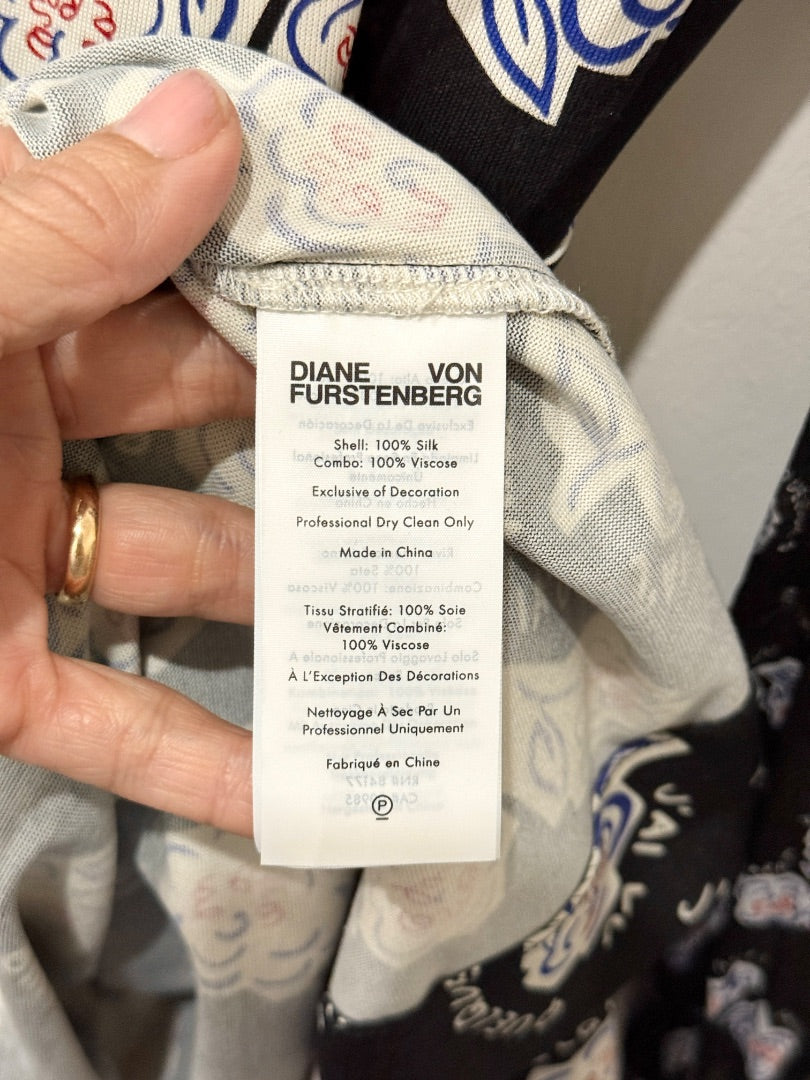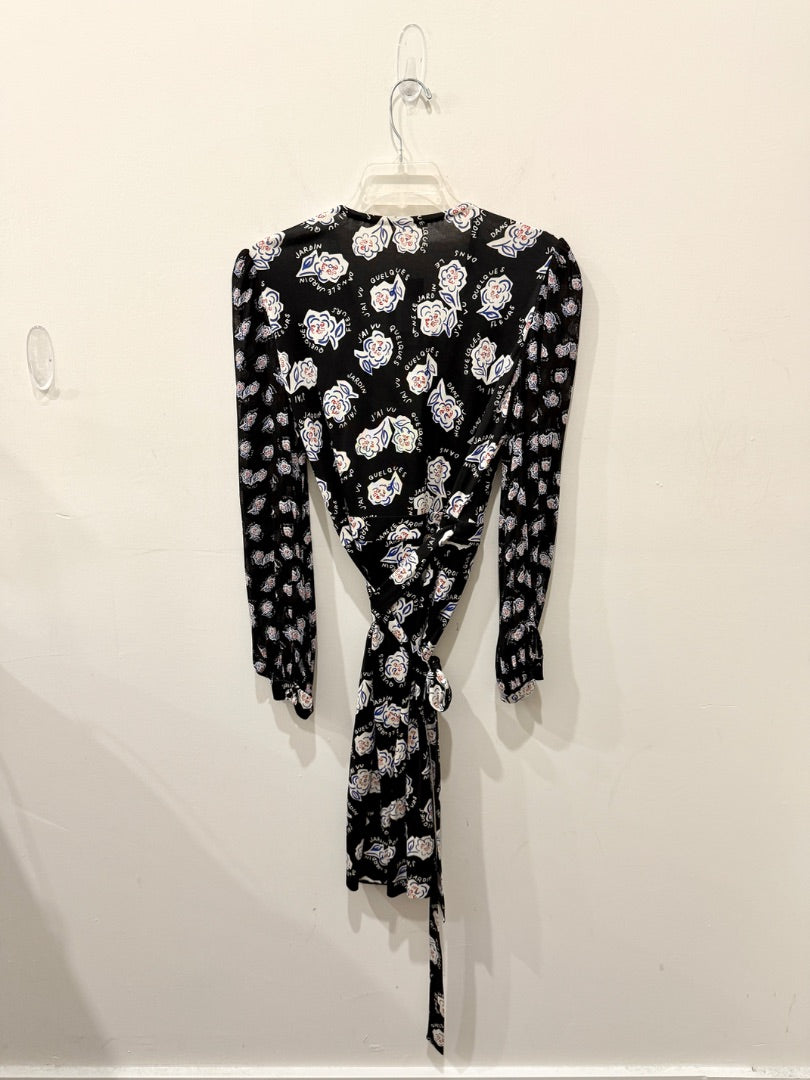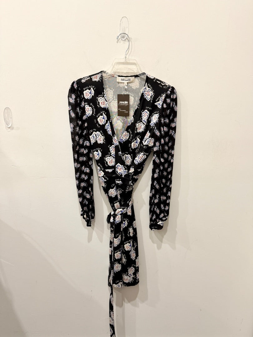 Diane von Furstenberg Erica Floral Print Wrap Midi Dress Black Women's Size M