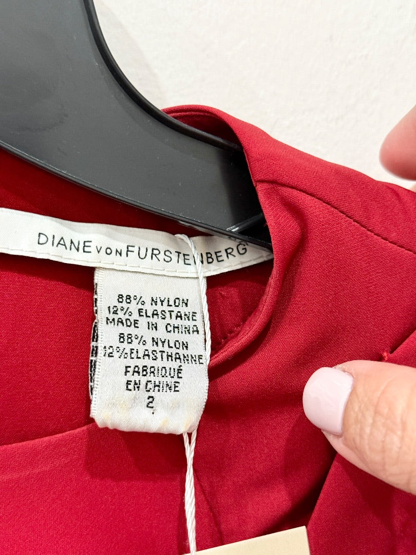 Diane von Furstenberg Agata Poplin Ruched Bodycon Mini Dress Red Women's Size 2