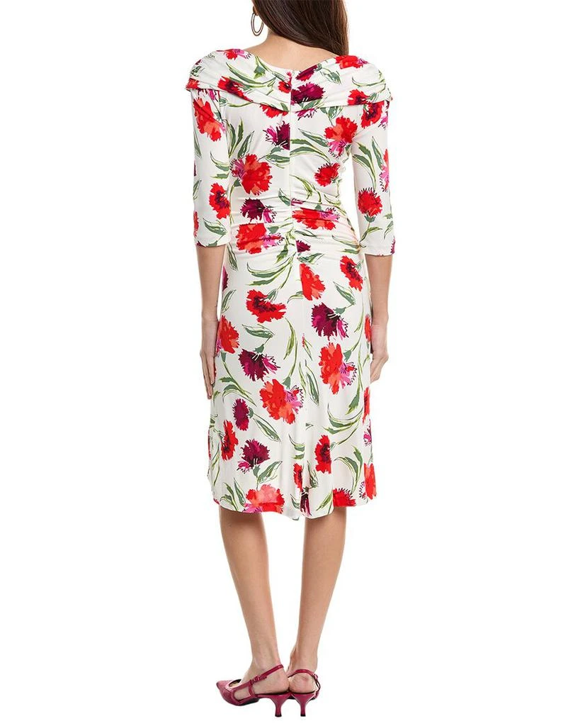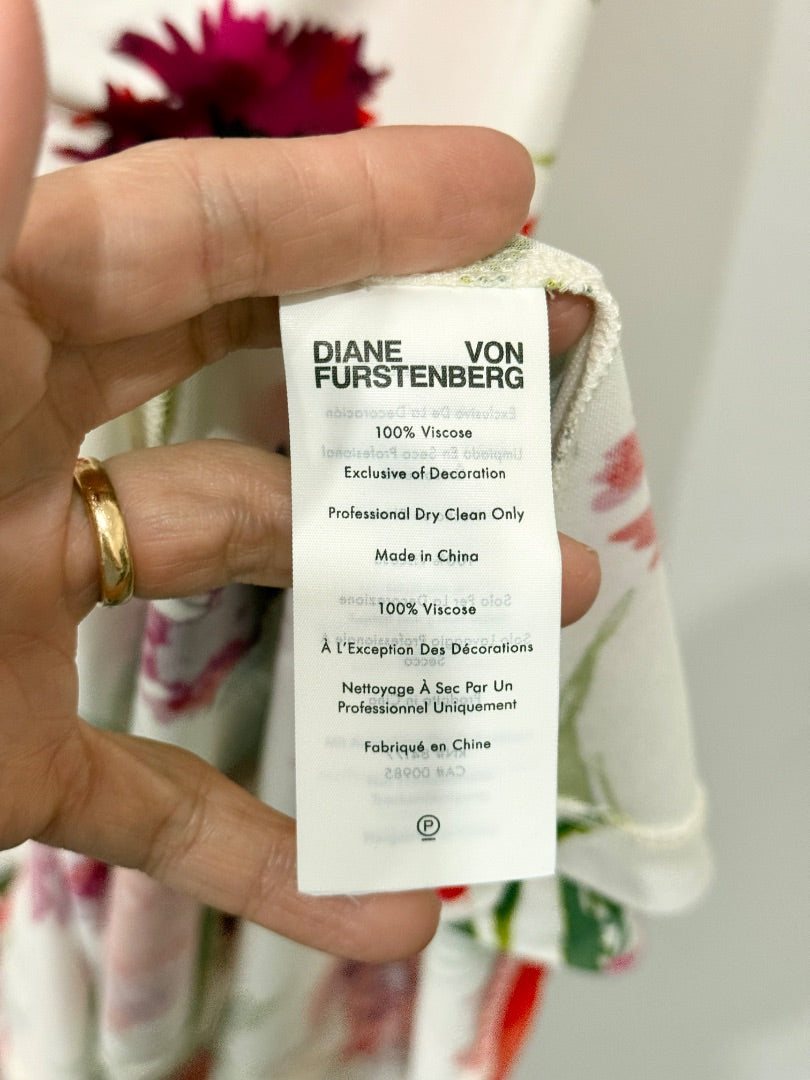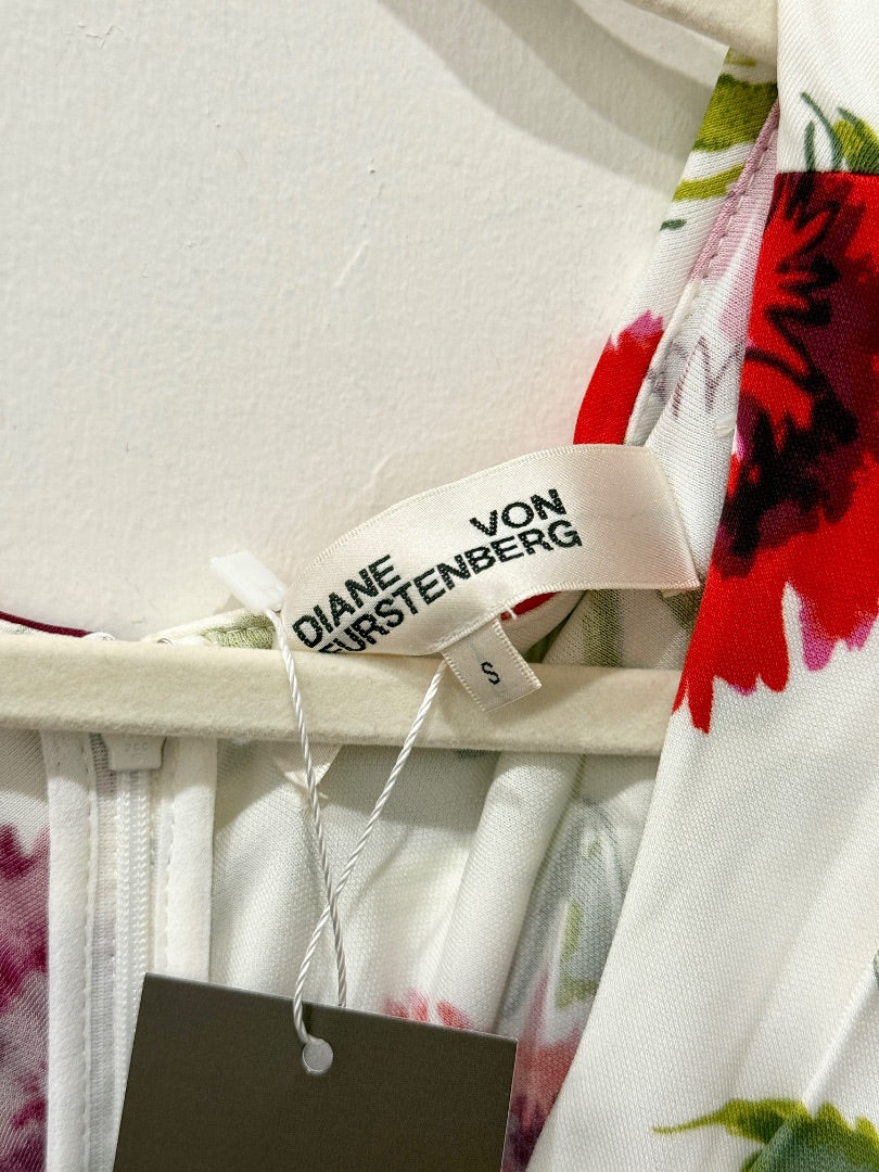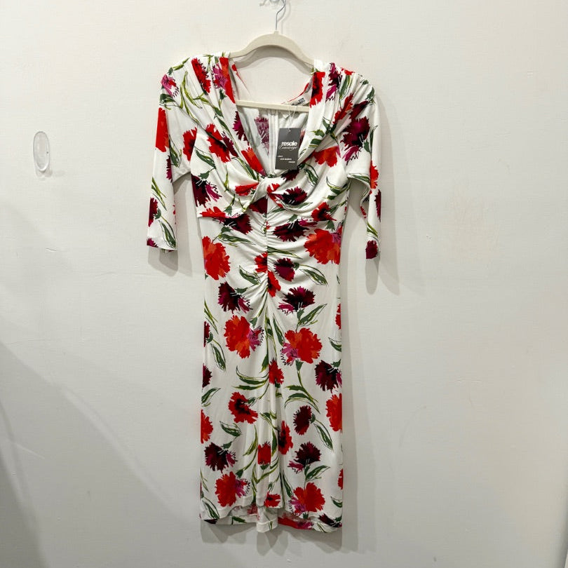 Diane von Furstenberg Jim Floral Jersey Knee Length Sheath Dress White/Red S