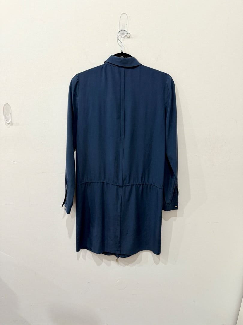 Diane von Furstenberg Francesca Pleated Tie Waist Mini Shirt Dress Navy Blue 4