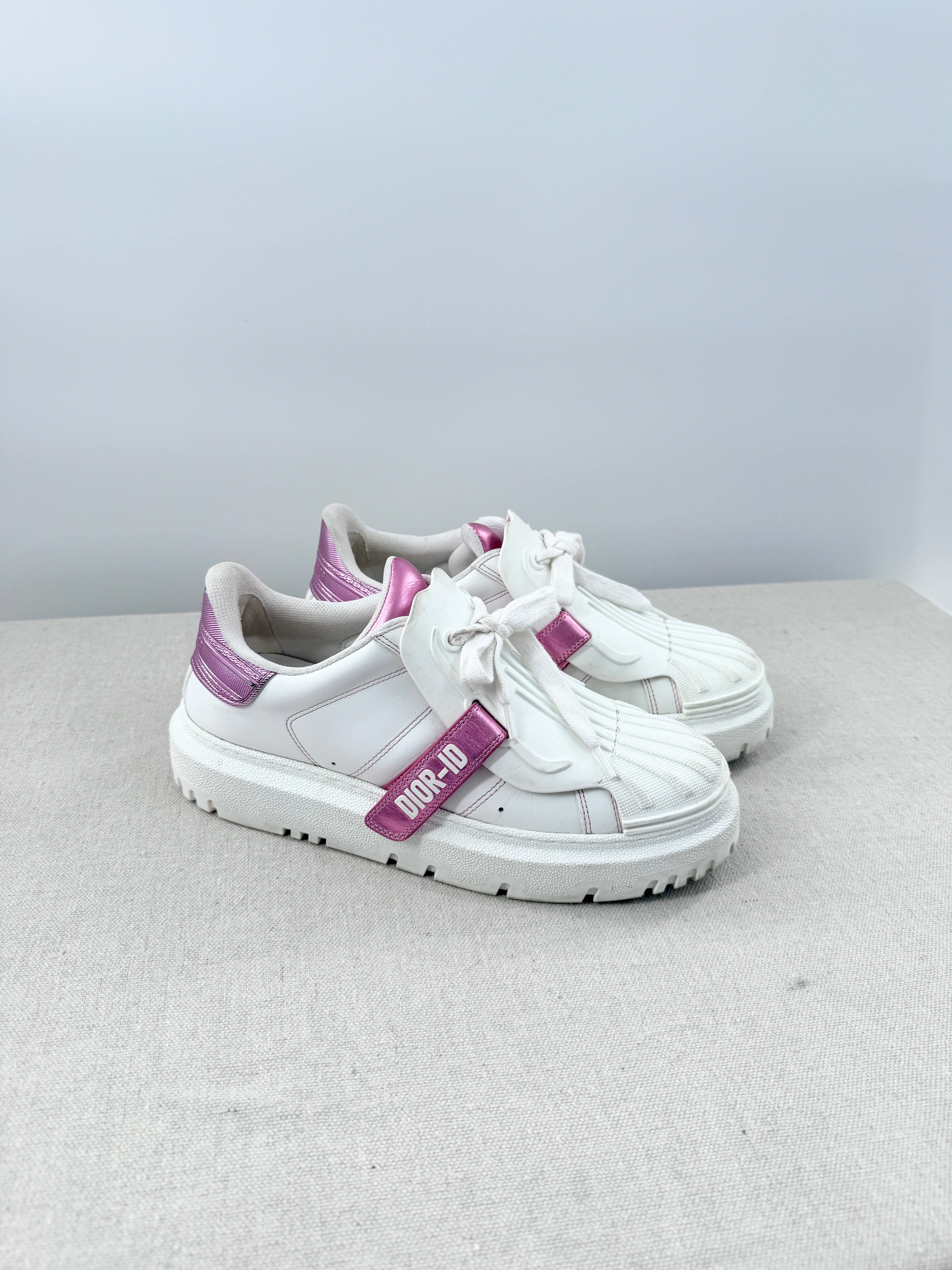 Dior chunky leather sneakers with metallic detail, 38