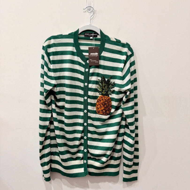 Dolce and Gabbana Striped Cardigan w/ Pineapple Sequin Embroidered Green/White L