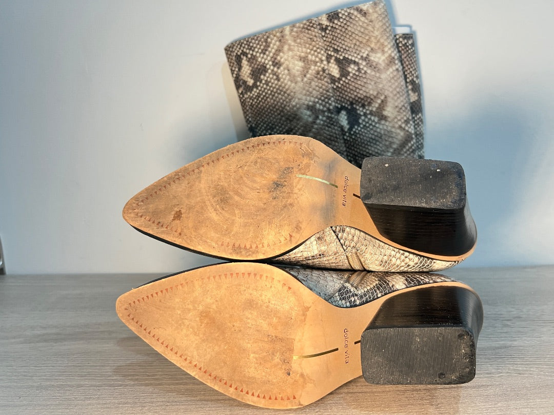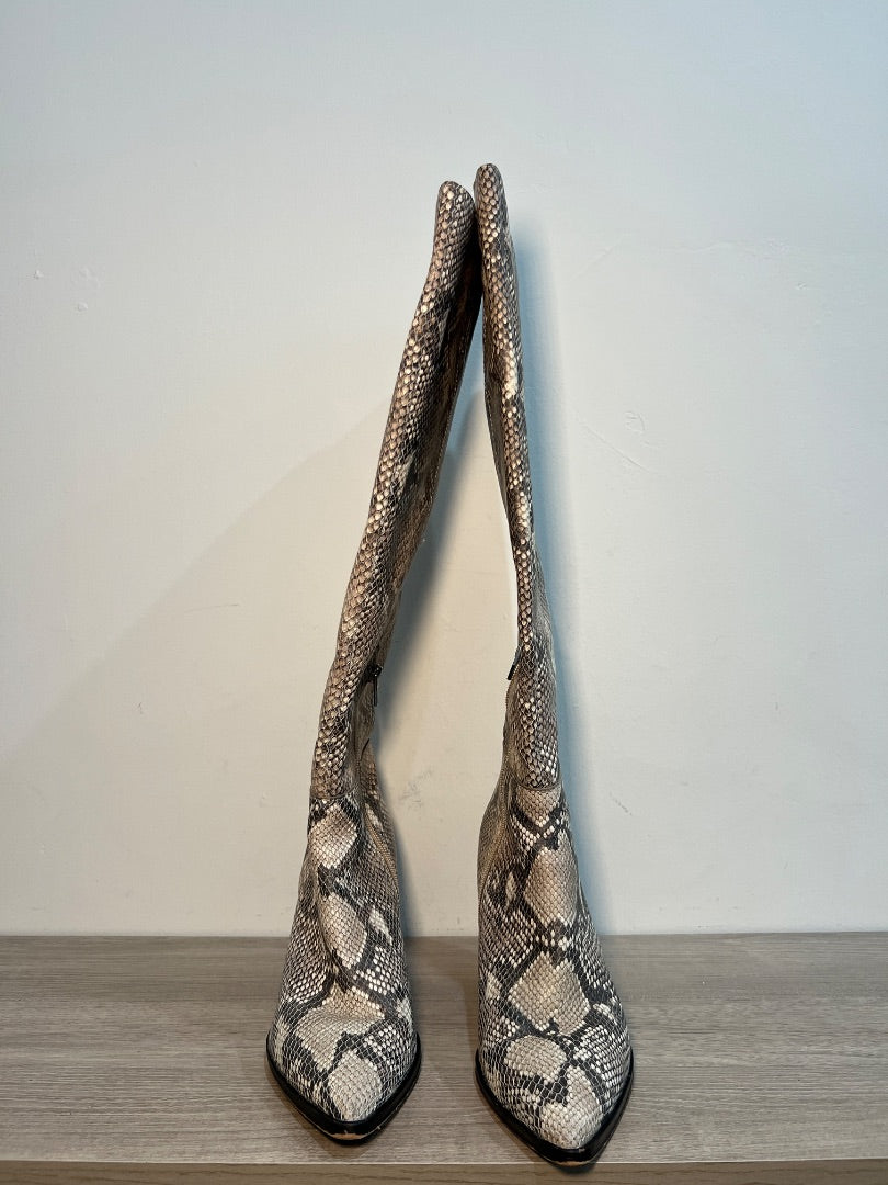 Dolce Vita Isobel Snake Print Leather Heeled Knee High Boots Beige Women's US 8.5
