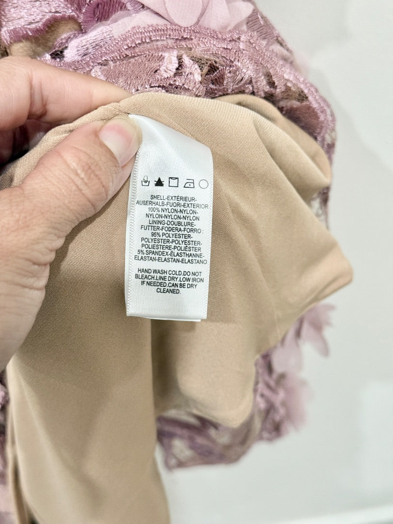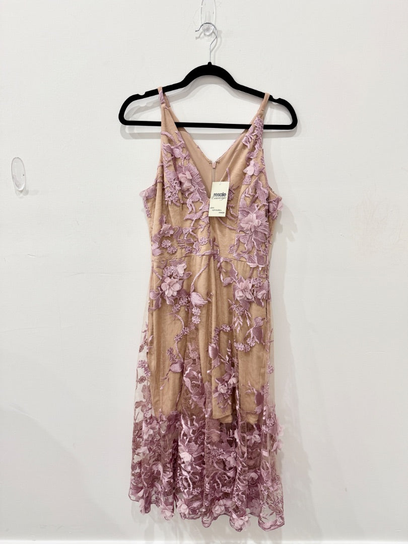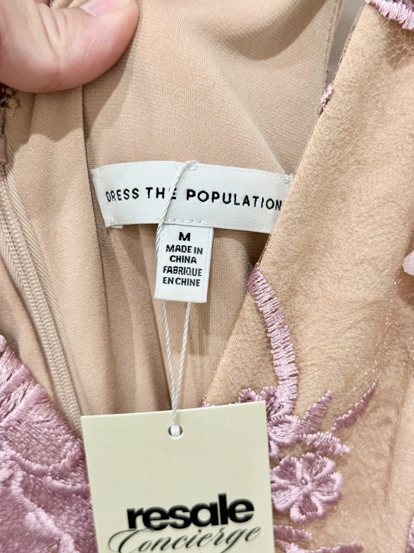 Dress the population Brown Sleeveless Dress w/pink flowers sewn on, Medium