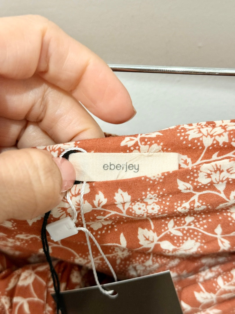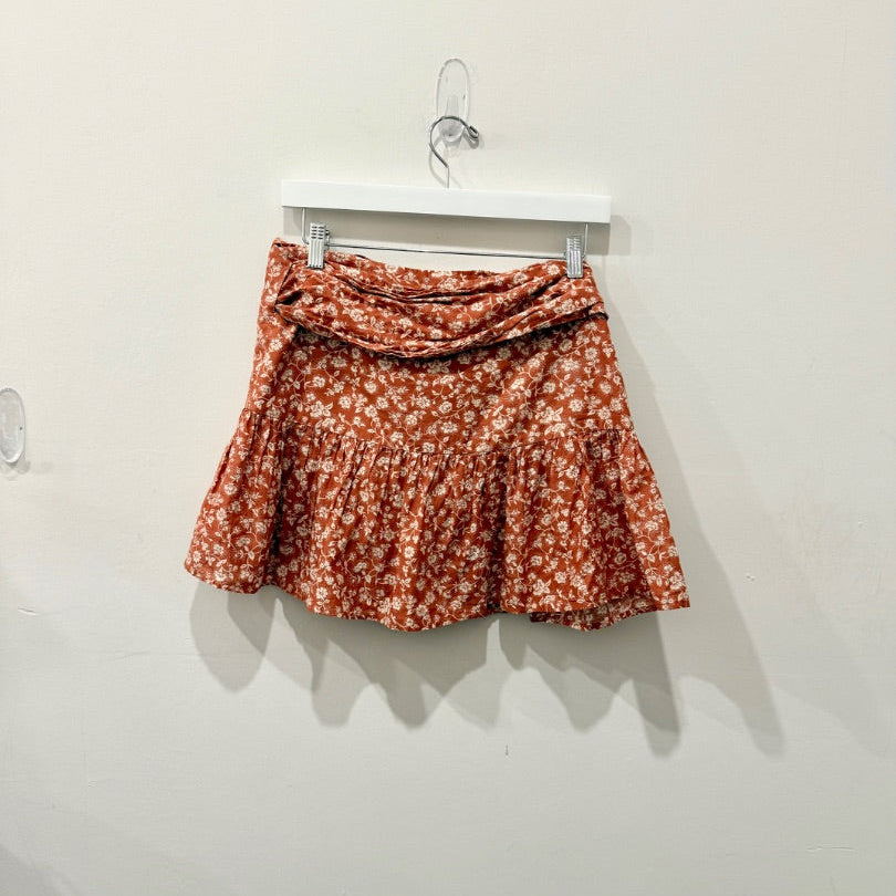 Eberjey Floral High Rise Tie Waist Boho Wrap Mini Skirt Burnt Brown/Cream Medium