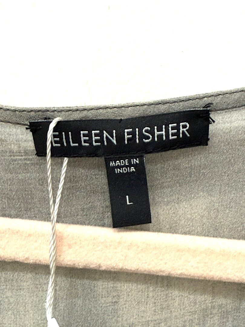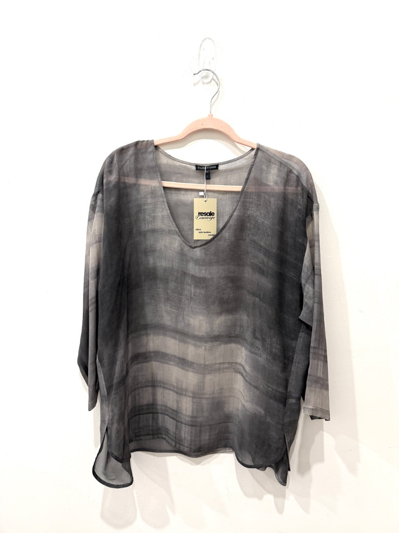 Eileen Fisher Silk 3/4 Sleeve Semi-Sheer V-Neck Hi-Low Blouse Gray Womens Size L
