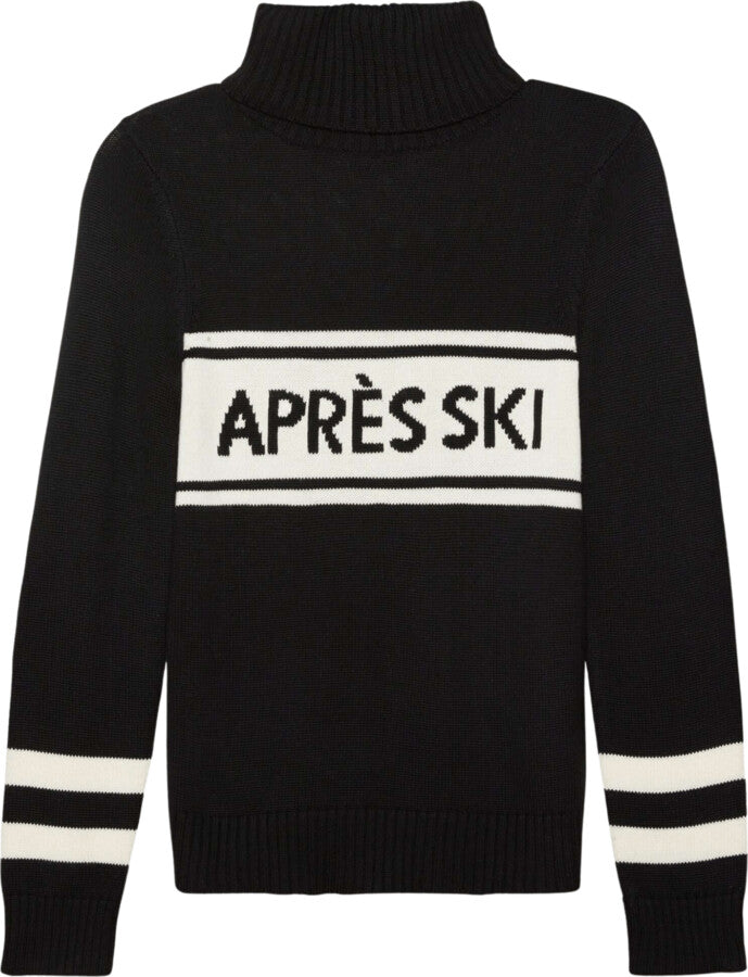 Crafted from soft knit fabric, this pullover features a classic turtleneck, long sleeves, and a chic black-and-white pattern for timeless winter style.