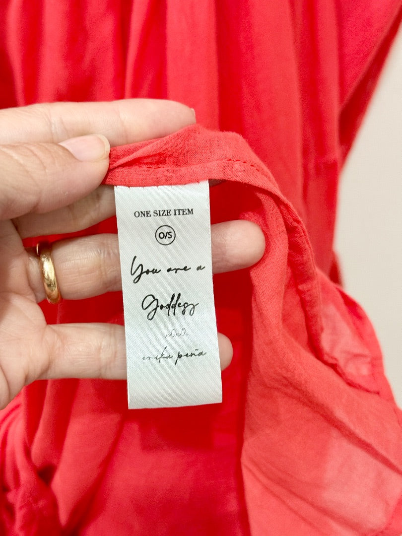 Lola Bohemian Halter Maxi Dress with Large Fringe Scarf Coral Red Women's Size S