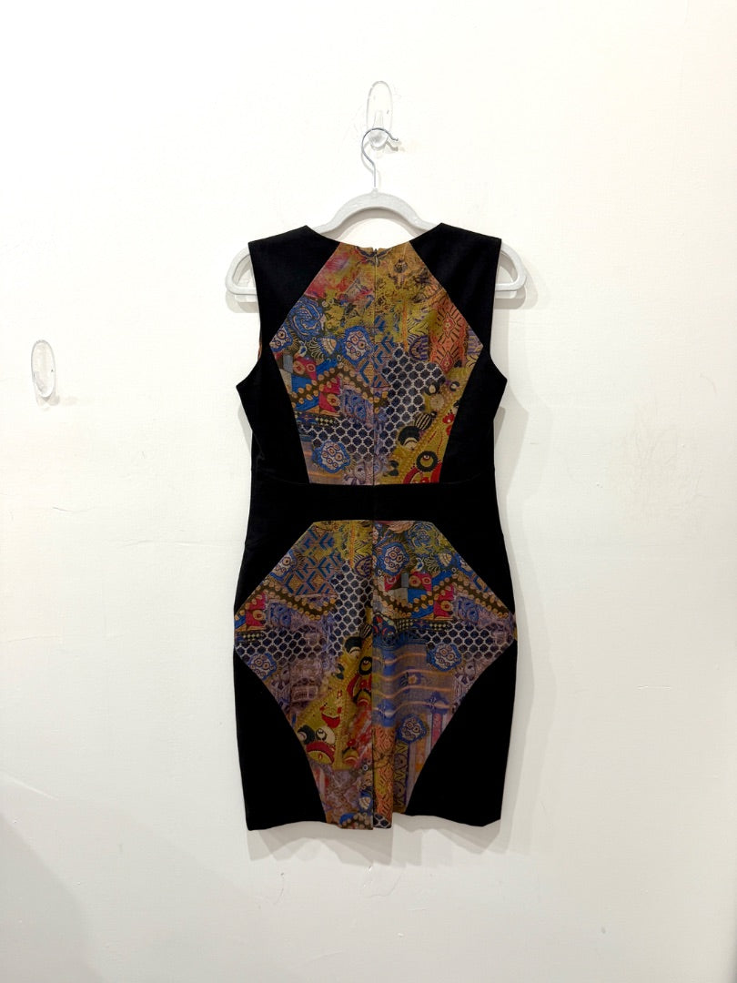 ETRO Patchwork Crewneck Sheath Dress Black Multicolor Women's Size IT 44/US 8-10