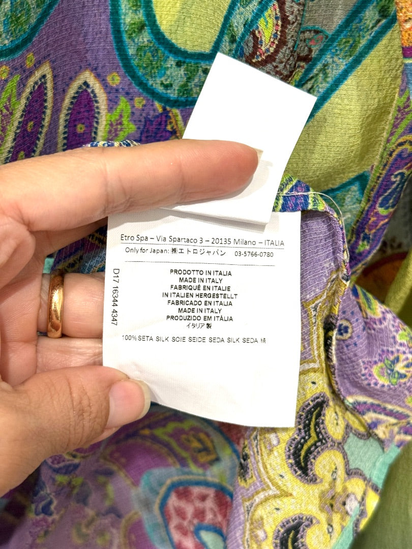 ETRO Paisley Print 100% Silk Button Down Shirt Multicolor Women's Size 40 / 4