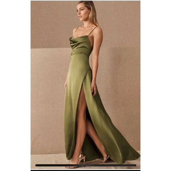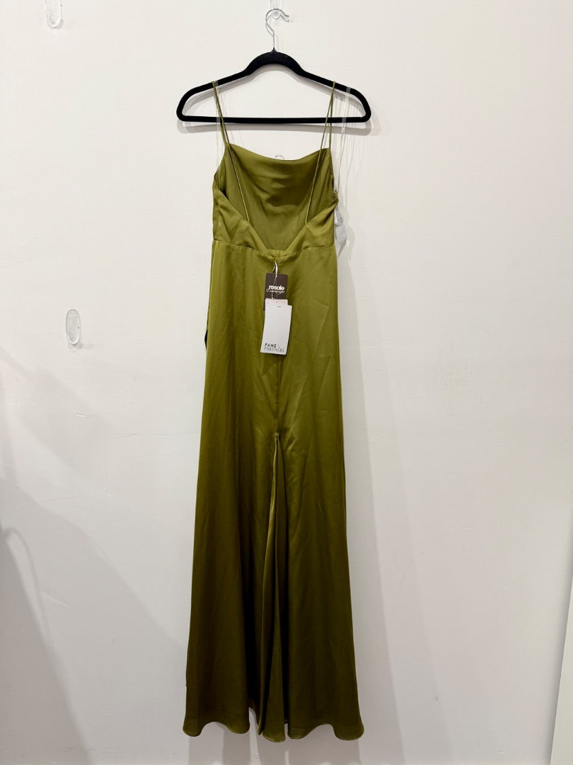 NWT Fame & Partners Rosabel Satin Open Back Maxi Slip Dress Olive Green Women 2