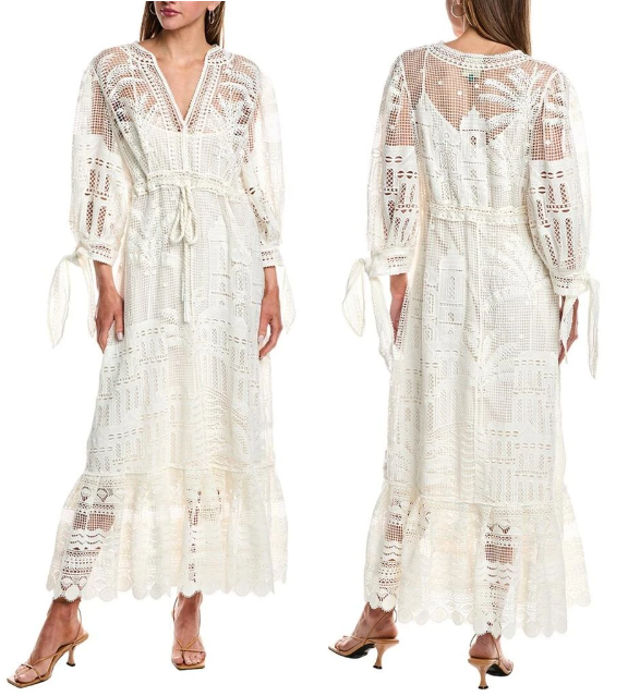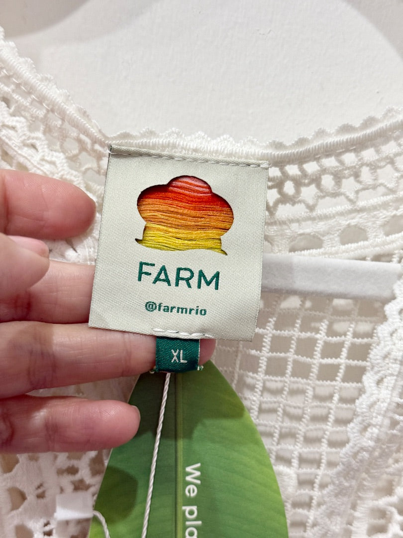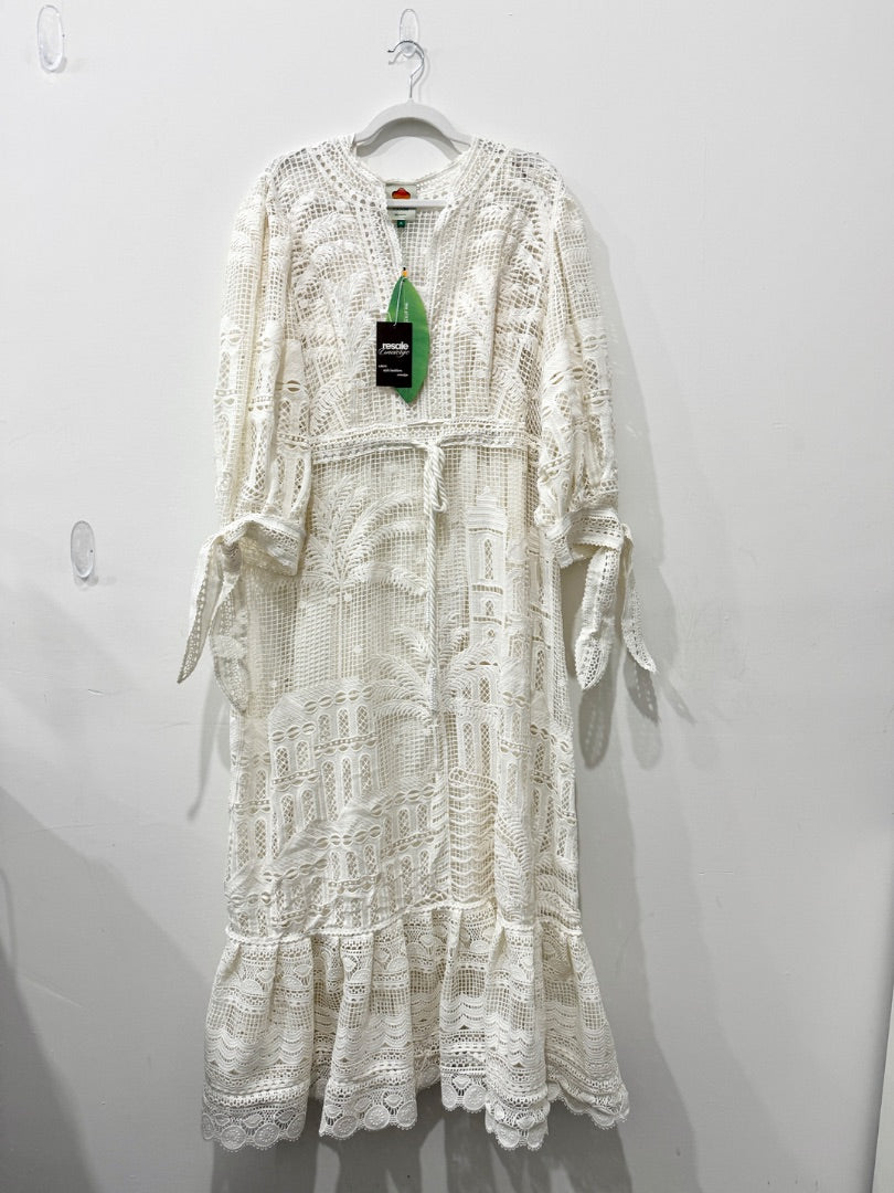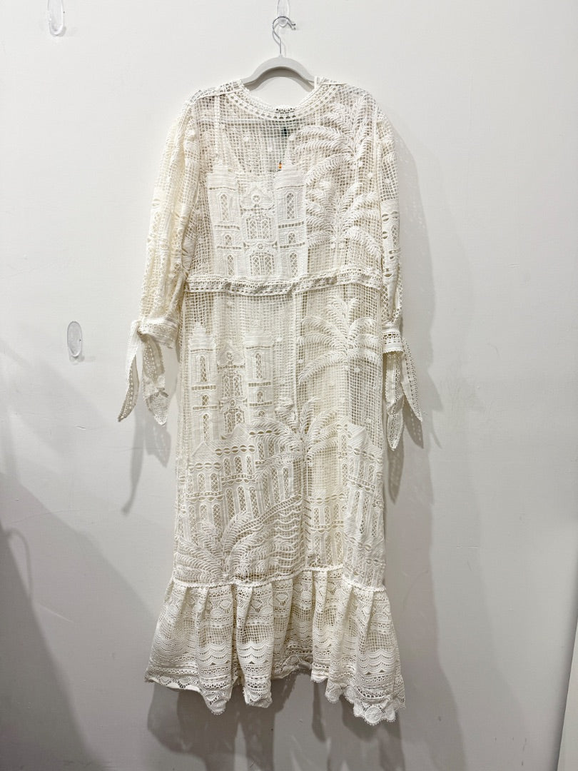 NWT Farm Rio Morada Boa Guipure Lace Crochet Maxi Dress with Slip Off-White XL