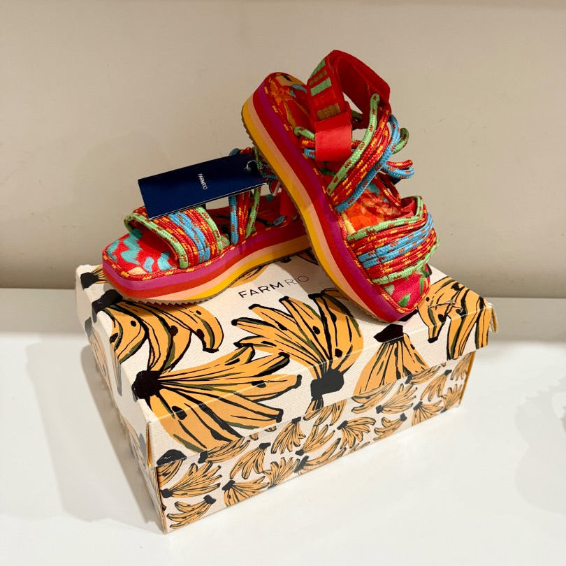 NWT Farm Rio Tropical Embroidered Rope Straps Platform Sandals Women's Orange 5