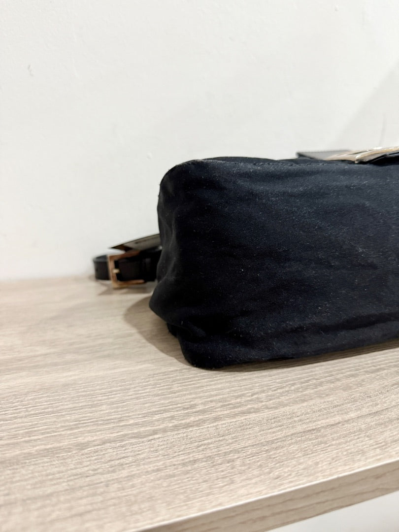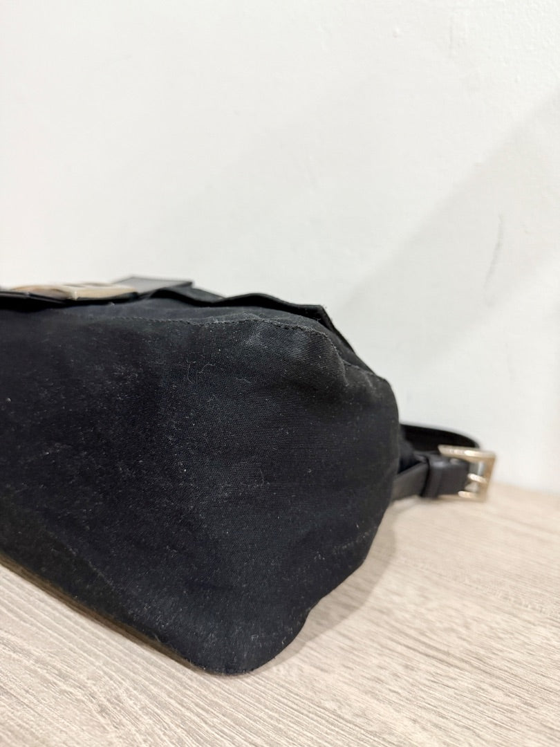 Fendi Mamm Baguette Suede and Leather Shoulder Handbag with FF Logo Buckle