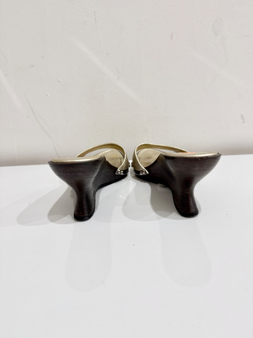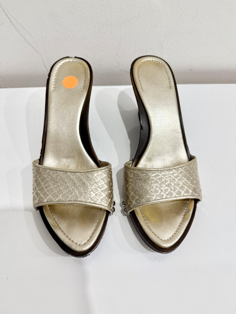 Salvatore Ferragamo Snakeskin Leather Slide Sandals Metallic Gold Women's US 7.5
