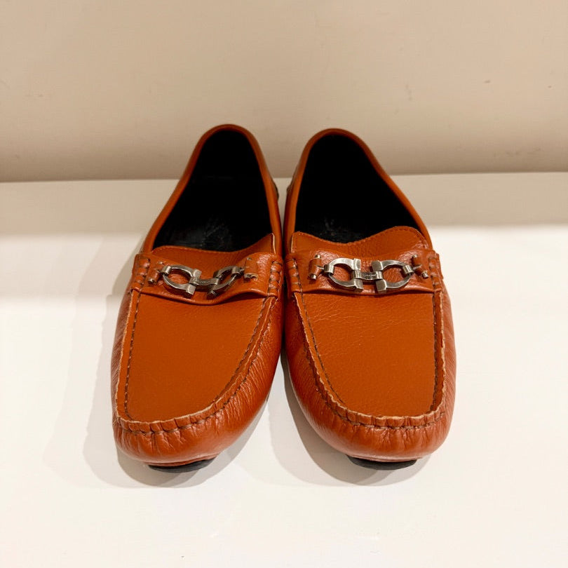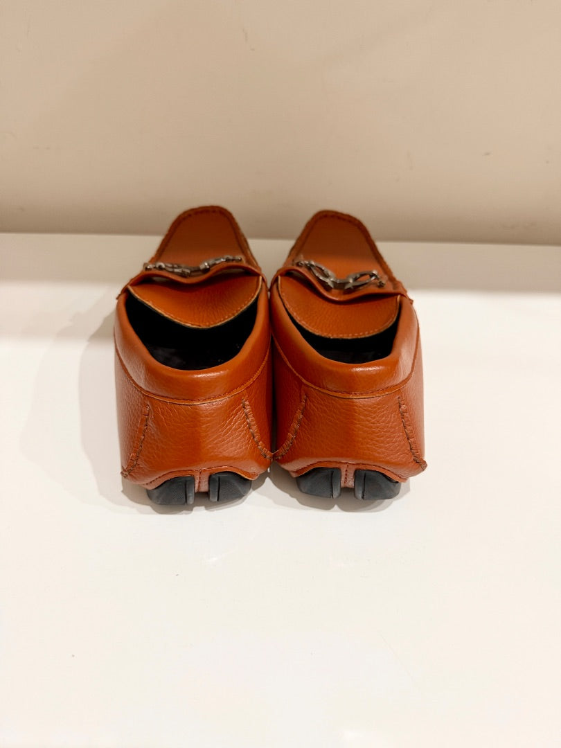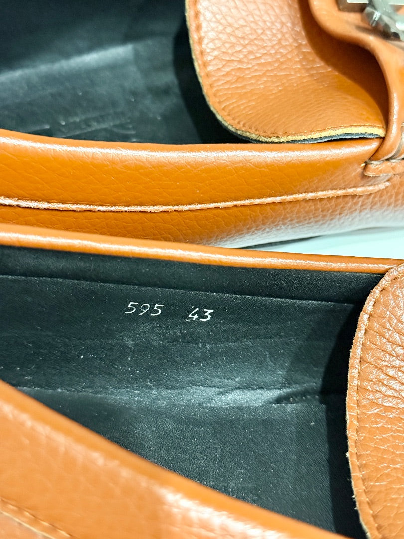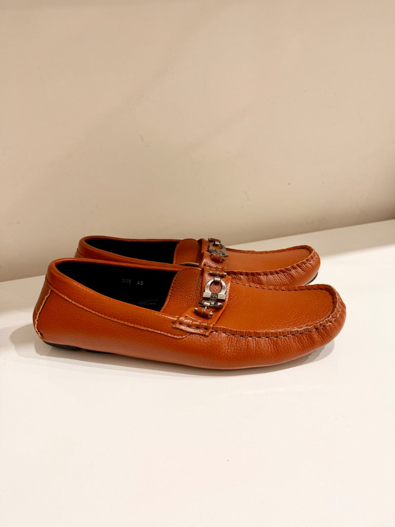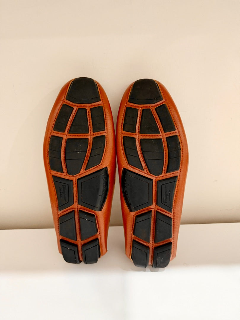 Ferragamo Leather Slip On Moccasin Loafers Medium Orange Brown Mens Size 43 / 10