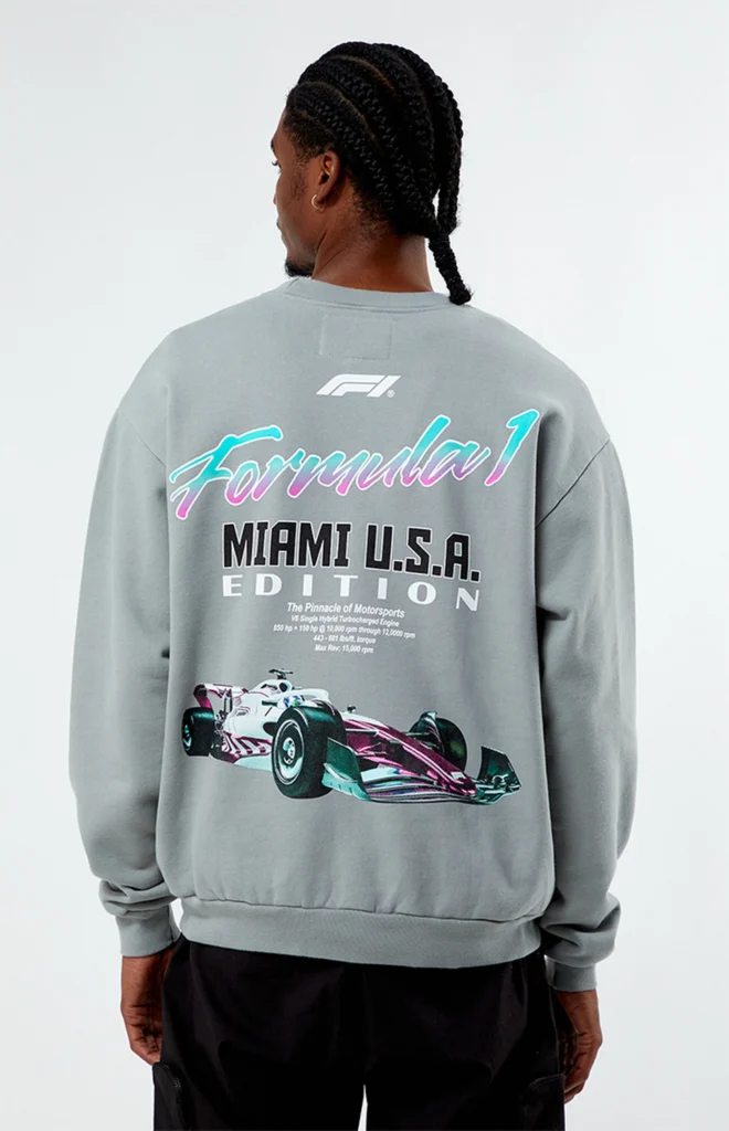 NWT Formula 1 x PacSun Miami Grand Prix Crew Neck Fleece Sweatshirt Gray Mens XL