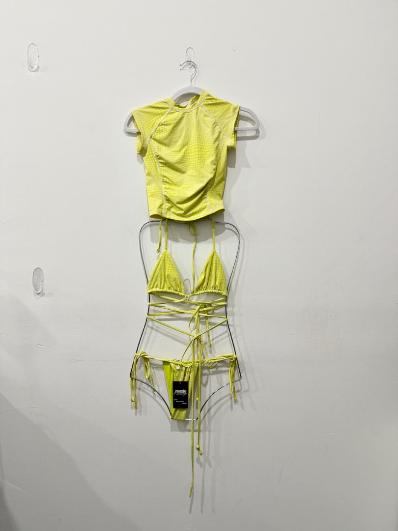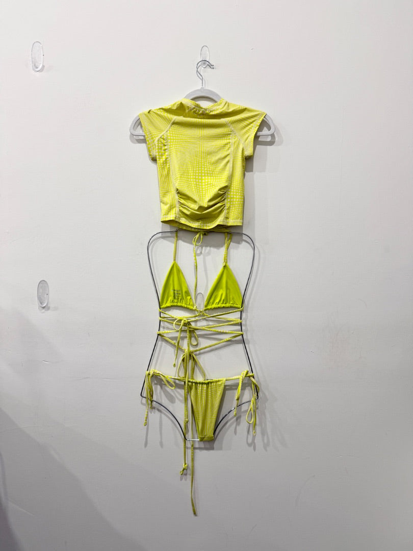 Frankies bikinis 3 piece set: rash guard and bikini set, XS