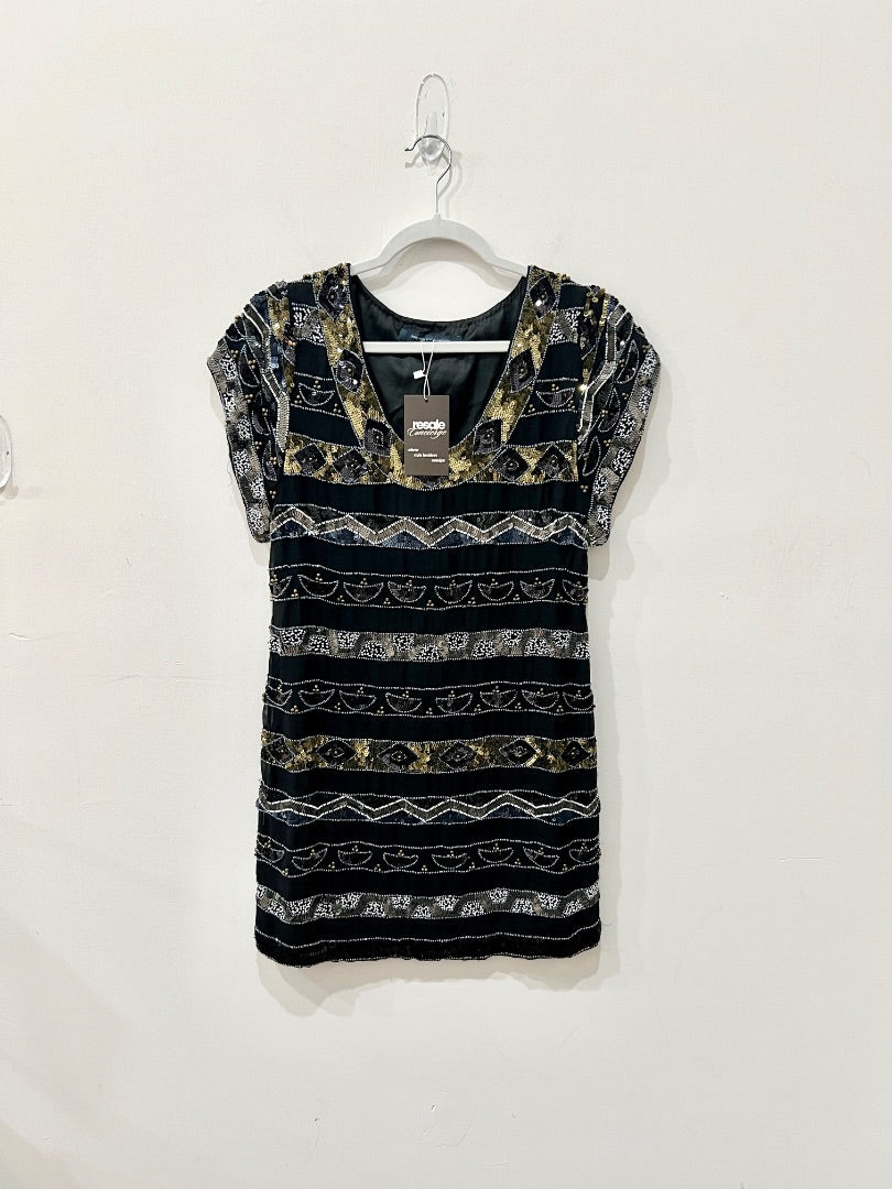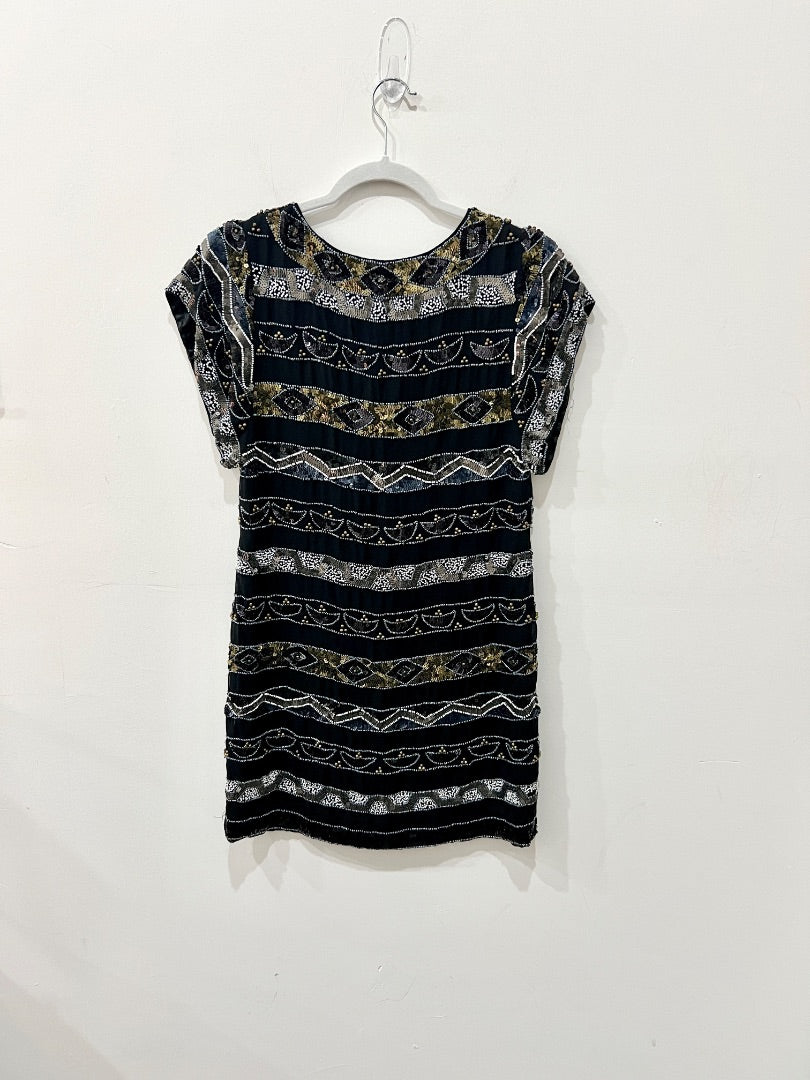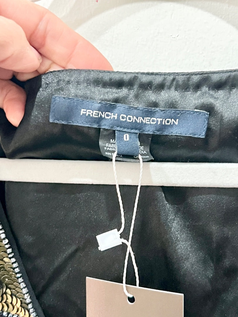 French Connection Embellished Beaded Sequin Mini Shift Dress Black Womens Size 0
