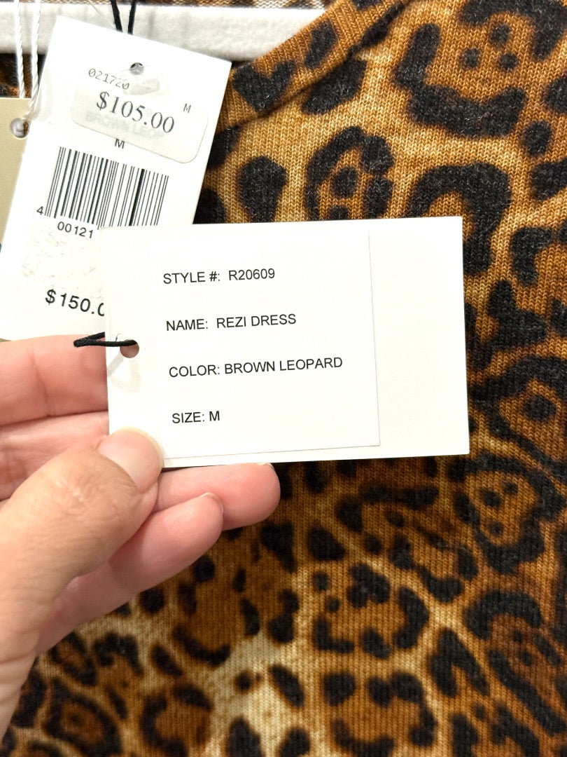 NWT Generation Love Puffed Sleeve Rezi Dress Brown Leopard Women's Size Medium