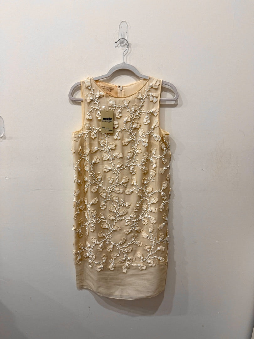 Giambatista Valli Paris Heavy Organza Embroidered Dress Off White Womens Size 40