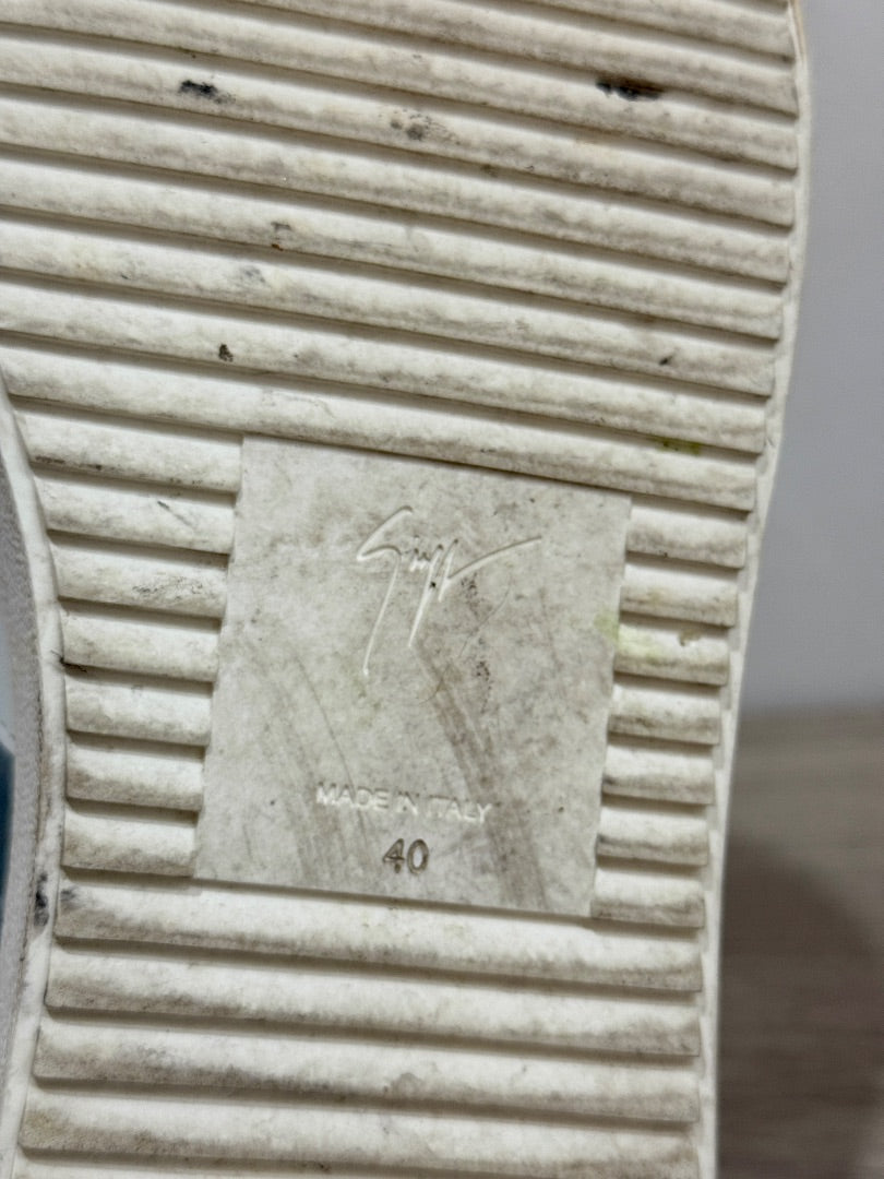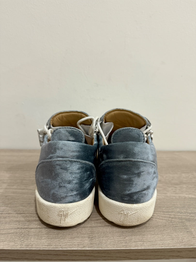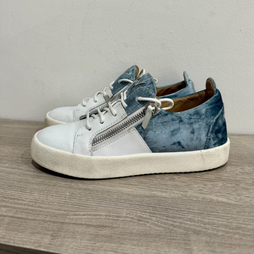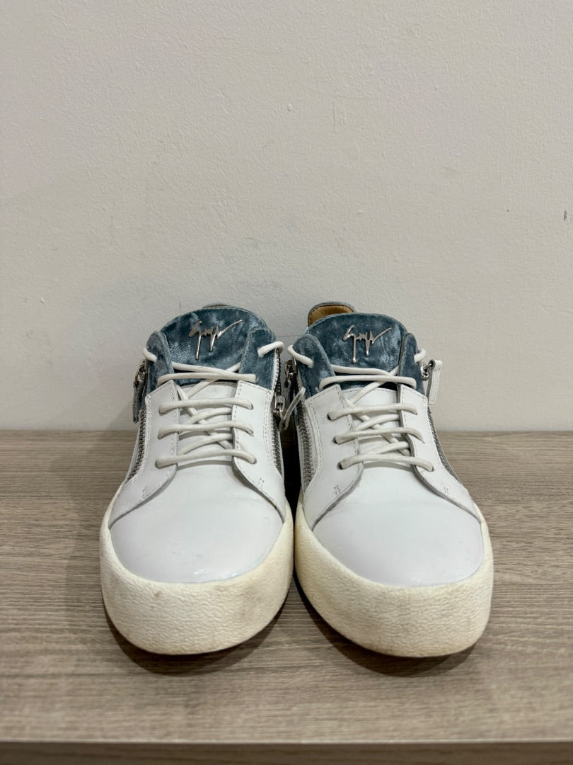 Giuseppe Zanotti Girlhood Leather Velvet Trim Comfort Sneaker White/Light Blue 40