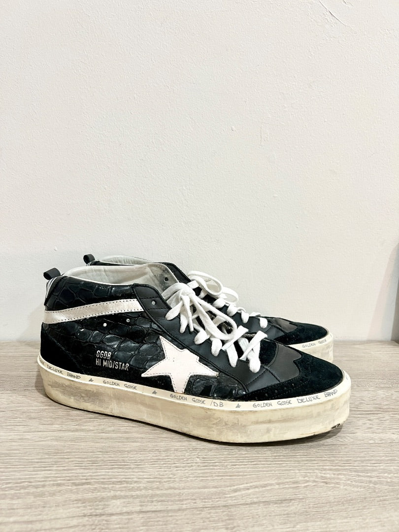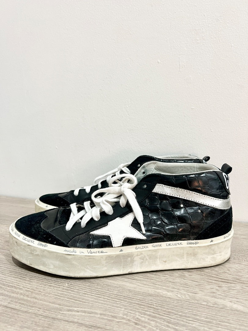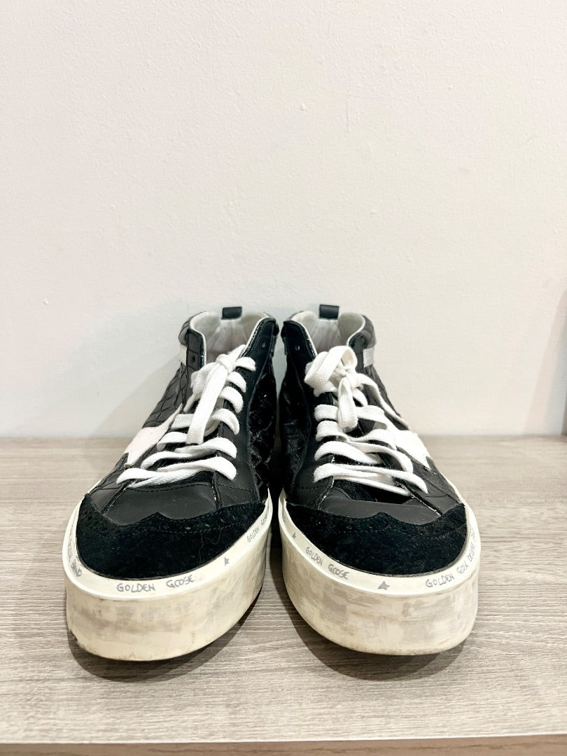 Golden Goose Deluxe Brand w/Alligator Skin Mid Top Sneakers Black & White EU 40