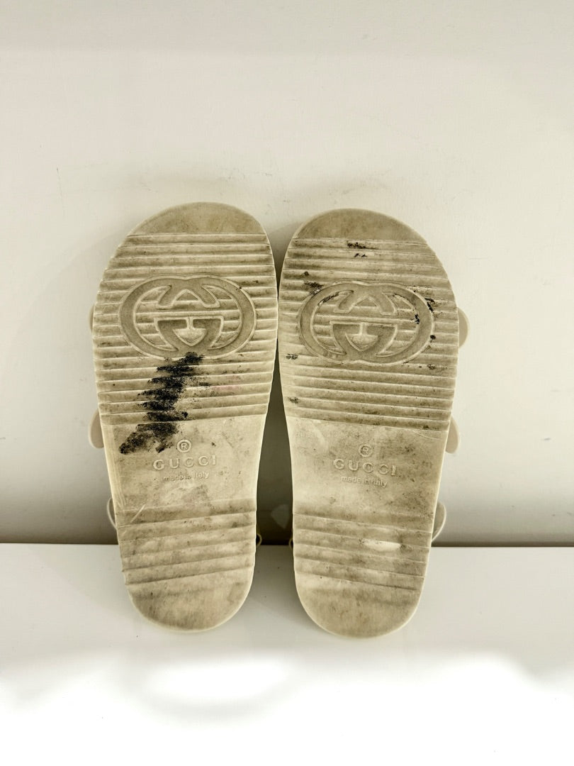 Gucci Isla Jelly Slingback Sandals with Double G with Studs Off-White Women's 8