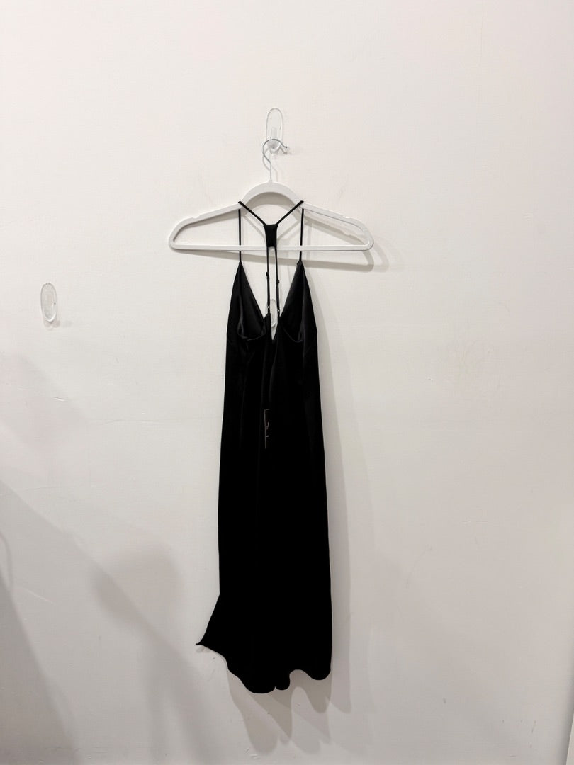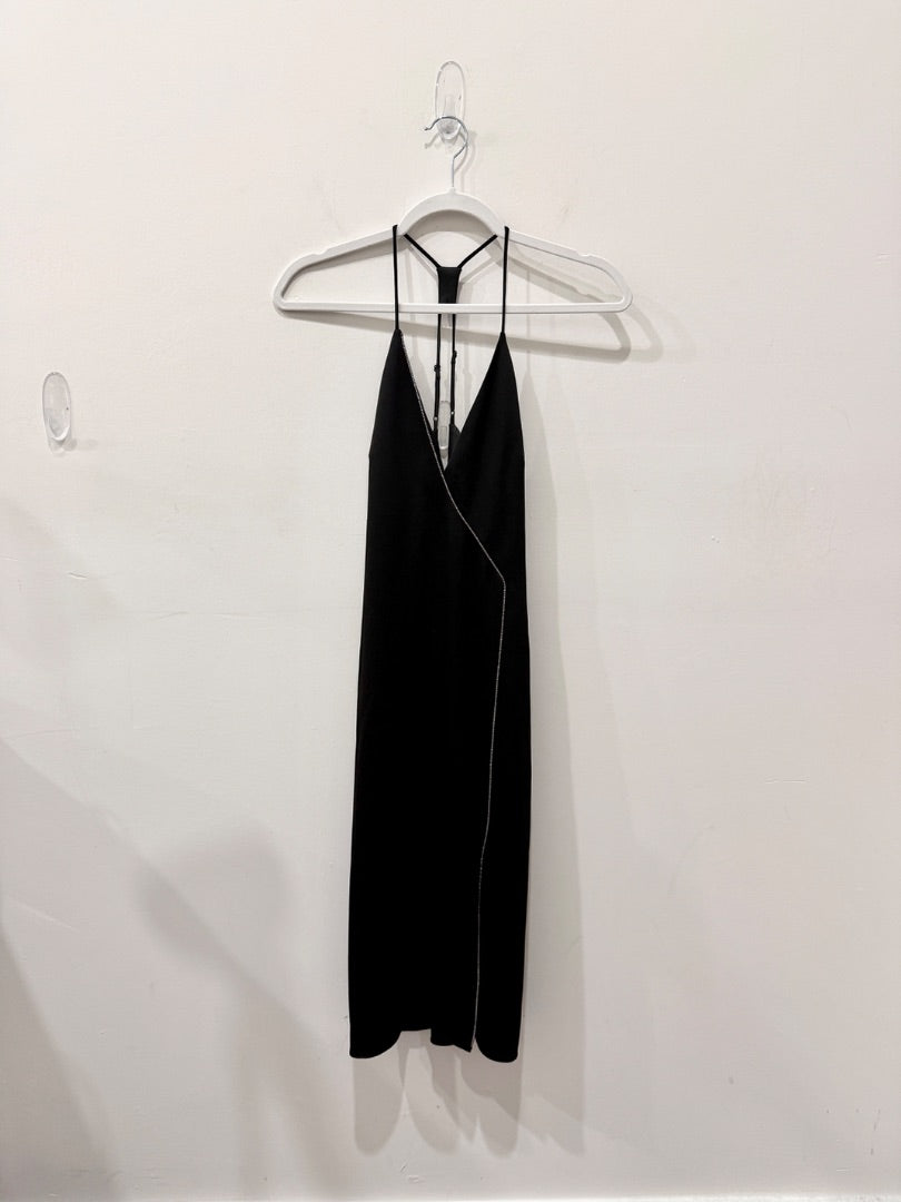 Halston Heritage sleeveless silver trim midi satin dress, 0