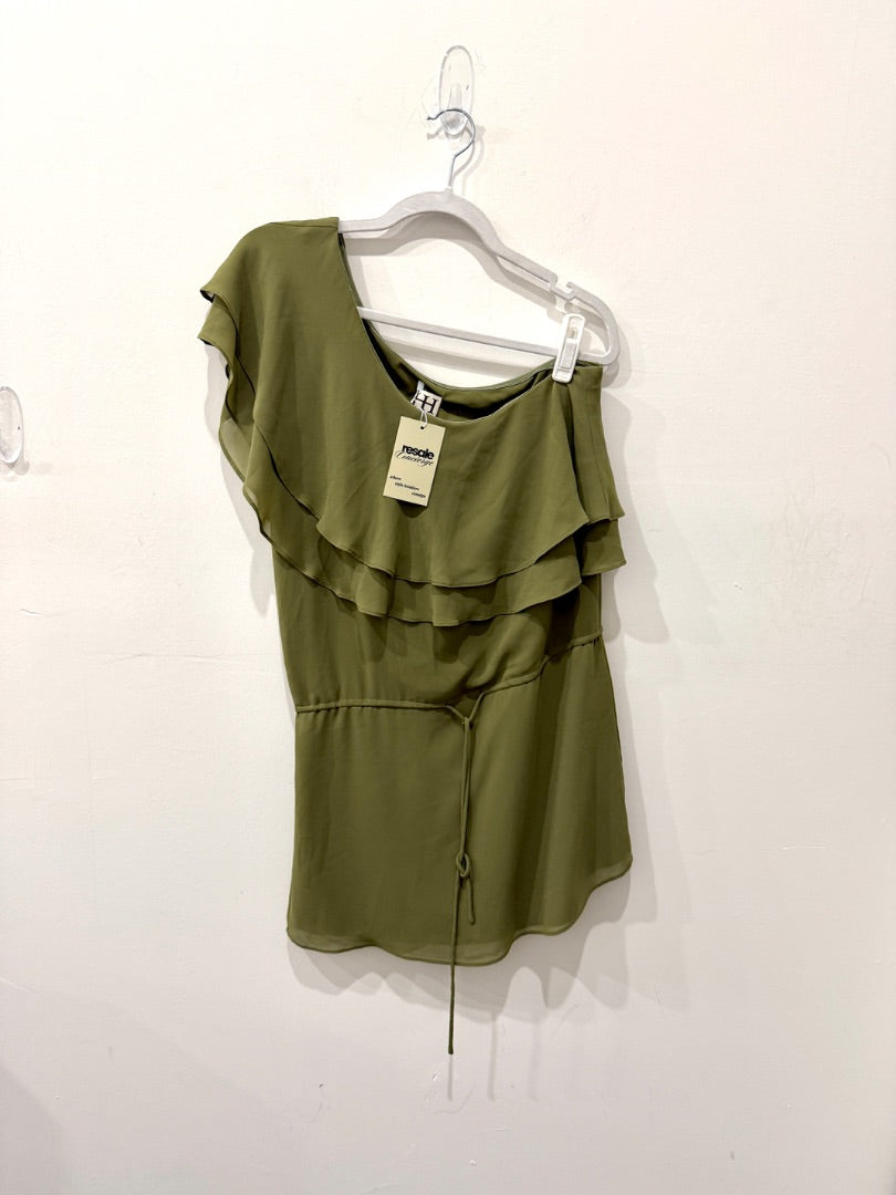 Haute Hippie Asymmetric Ruffle One-Shoulder Mini Dress Green Women's Size Small