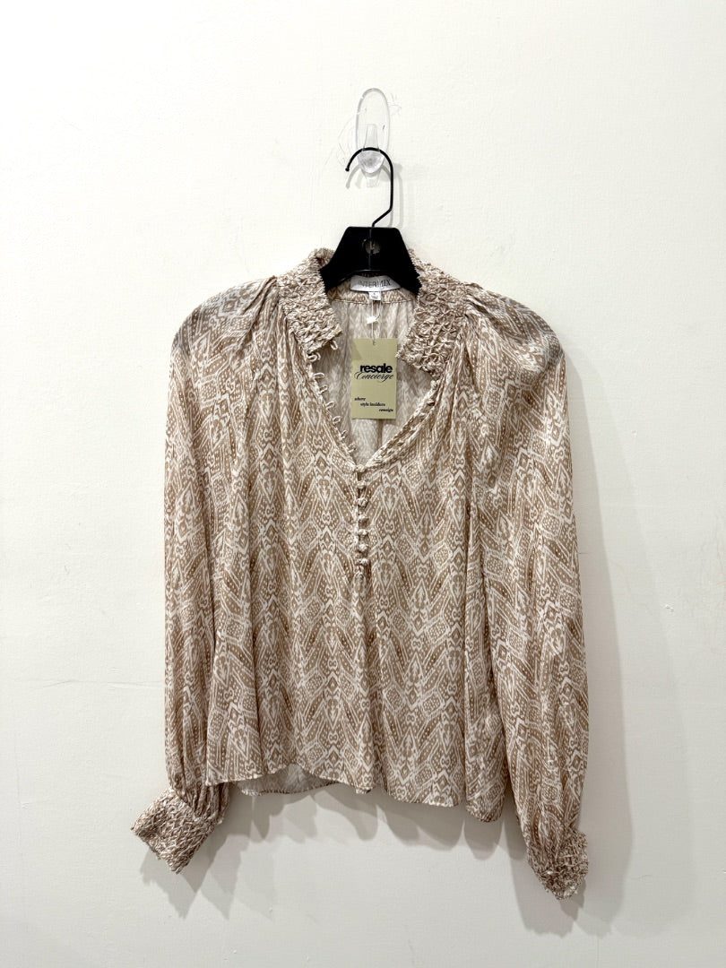 Intermix Perry Printed Long Sleeve Button Modal Blouse Pale Beige Women's Size 4