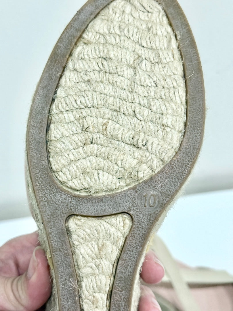 J.Crew Lace-Up Canvas Raffia Wedge Espadrille Sandals Blush Pink Women's US 10