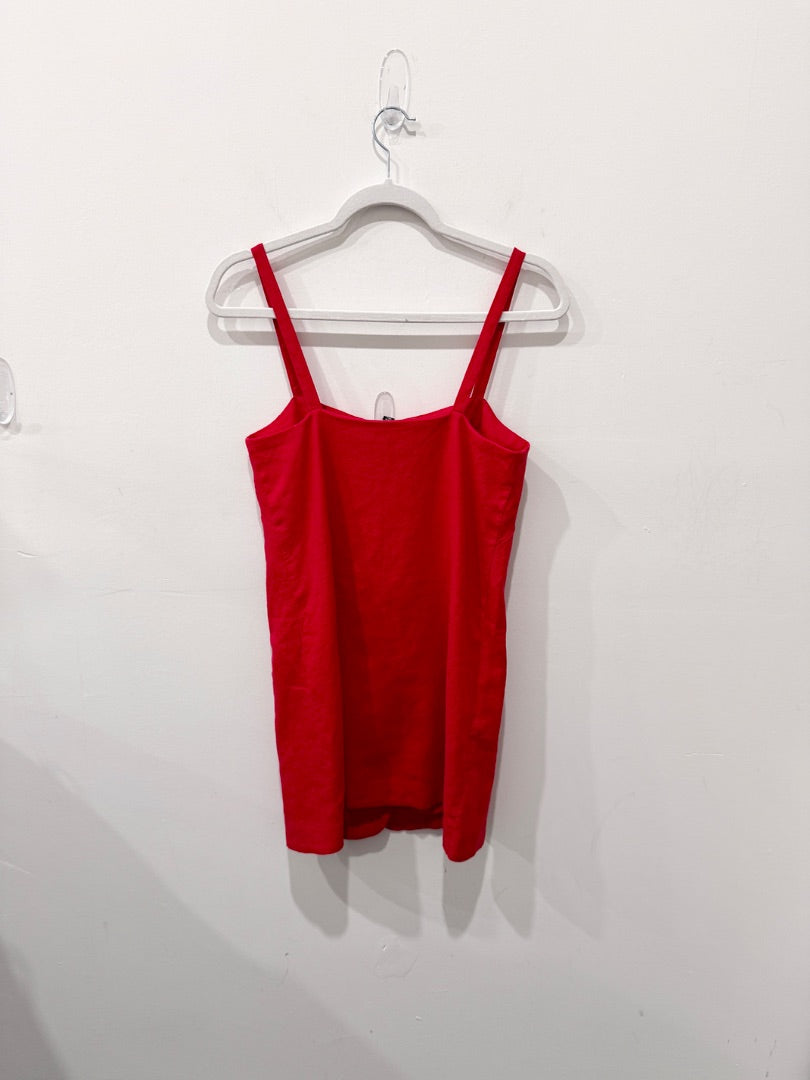 vacay, summer, resort wear, trendy, chic, modern, classic, casual, beach, boho, bohemian, mini dress, minimalist, feminine, cottagecore, brunch, garden party, shift dress, tank dress, red dress, linen, daytime