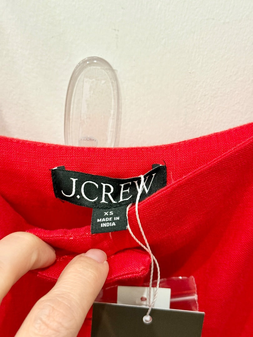 NWT J. Crew Claudia Linen Sleeveless Button Front Tank Shift Mini Dress Red XS