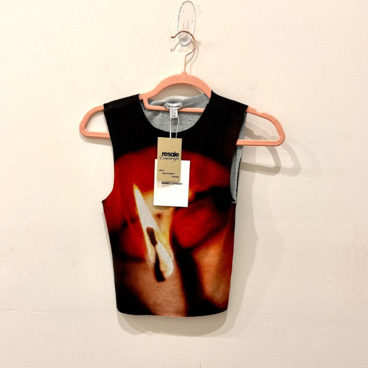 NWT Jaded London Slinky Flame Lips Sleeveless Tank Top Black/Red Women's Size 0
